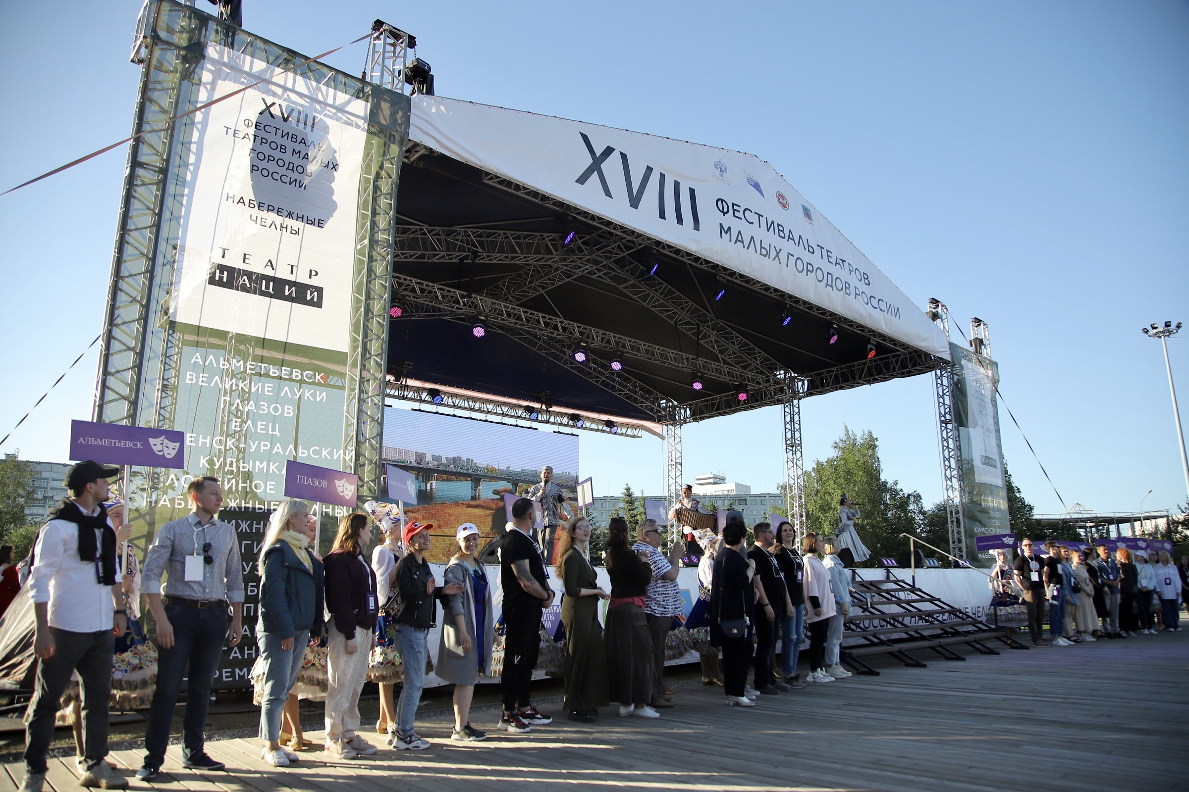 В Набережных Челнах состоялось торжественное открытие XVIII Фестиваля театров малых городов России. Это одно из главных направлений деятельности Государственного театра Наций и одно из важнейших событий культурной жизни регионов страны. Художественным руководителем Фестиваля является народный артист России, лауреат Государственной премии РФ Евгений Миронов. По его инициативе с 2010 года Фестиваль проводится ежегодно. В нем участвуют профессиональные театры из малых российских городов. За годы существования Фестиваль стал неотъемлемой частью театральной карты России.