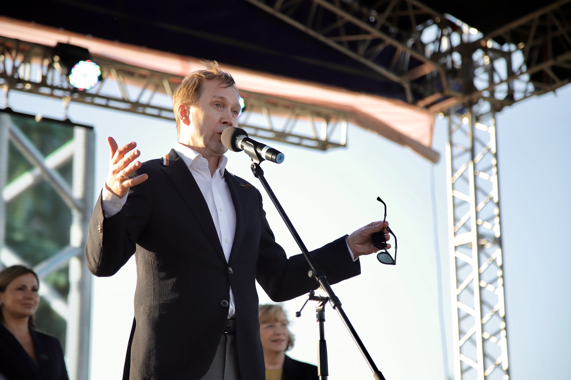 Евгений Миронов, приветствуя челнинцев на площади Азатлык, отметил, что на этой неделе Набережные Челны станут театральной столицей России: «Я вижу и знакомые лица участников фестиваля, и тех, кто участвует впервые. Я желаю вам плодотворной работы, здесь проходит большая образовательная программа, не упустите эту возможность. Зрителям я желаю новых открытий и приятного времяпровождения, а городу процветать дальше!»,- сказал он.