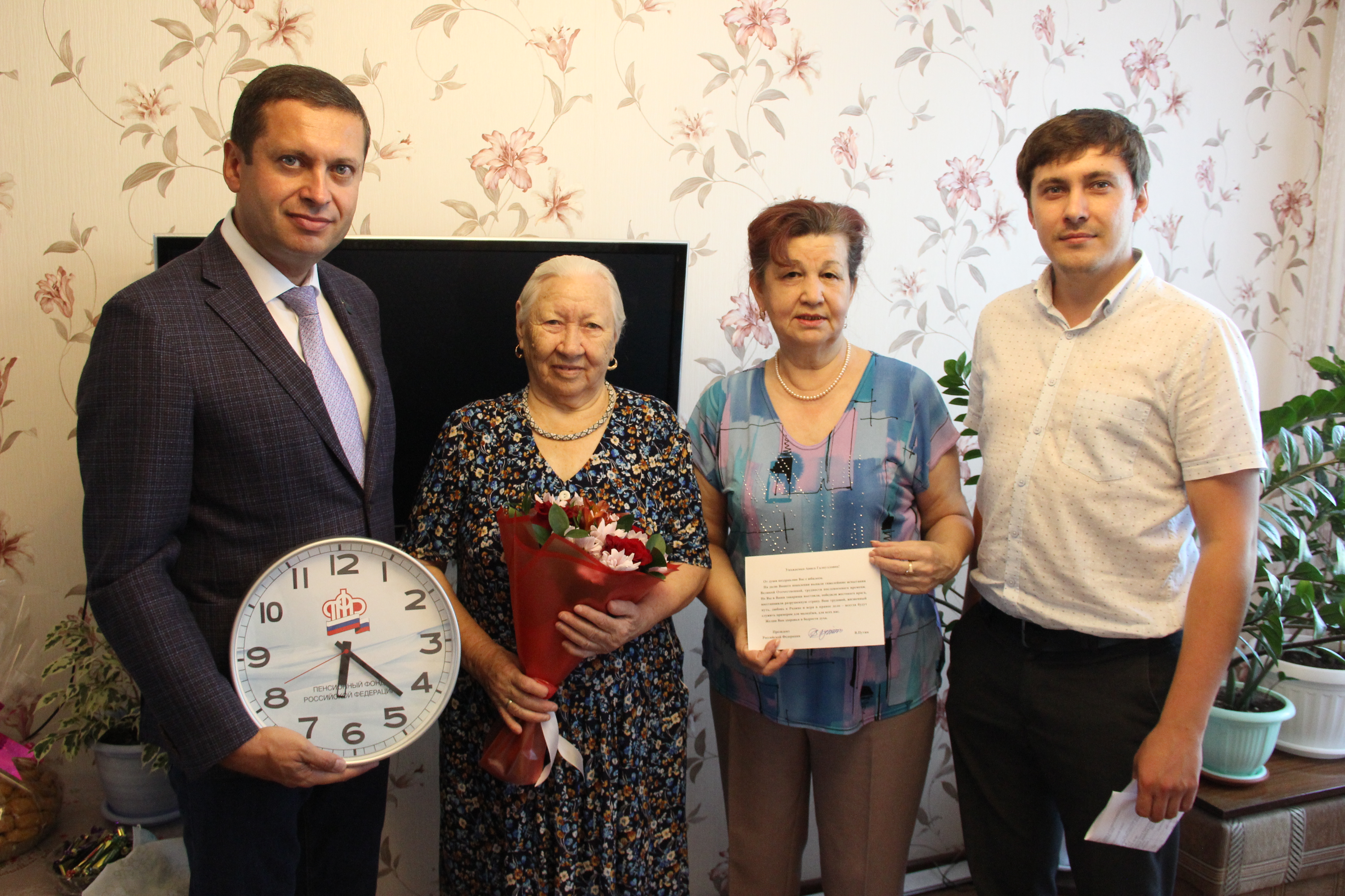 От имени президента РФ Владимира Путина, мэра города Наиля Магдеева, и.о.главы администрации Центрального района Алексея Тарабукина поздравления с юбилеем получил ветеран Великой Отечественной войны Багаутдинова Аниса Галиулловна. К поздравлениям присоединились депутат Городского Совета Эдуард Фаттахов, председатель ТОС Дуррия Ризатдинова.