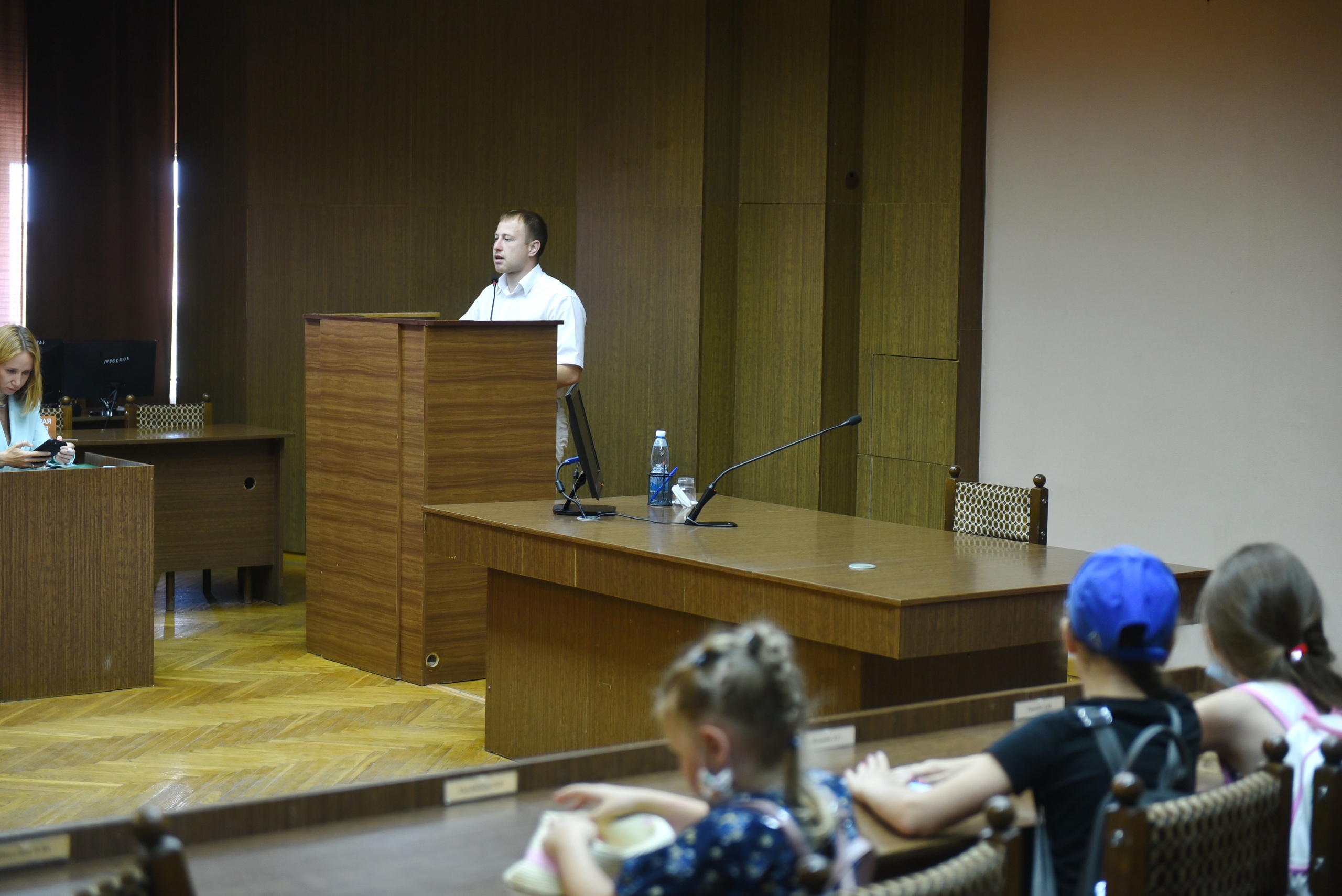 Участники лагеря также посетили зал 405, где проходят заседания Городского Совета и другие важные городские совещания. Начальник отдела по поддержке и развитию предпринимательства Айрат Сагдеев рассказал о работе управления экономики и ответил на вопросы.
