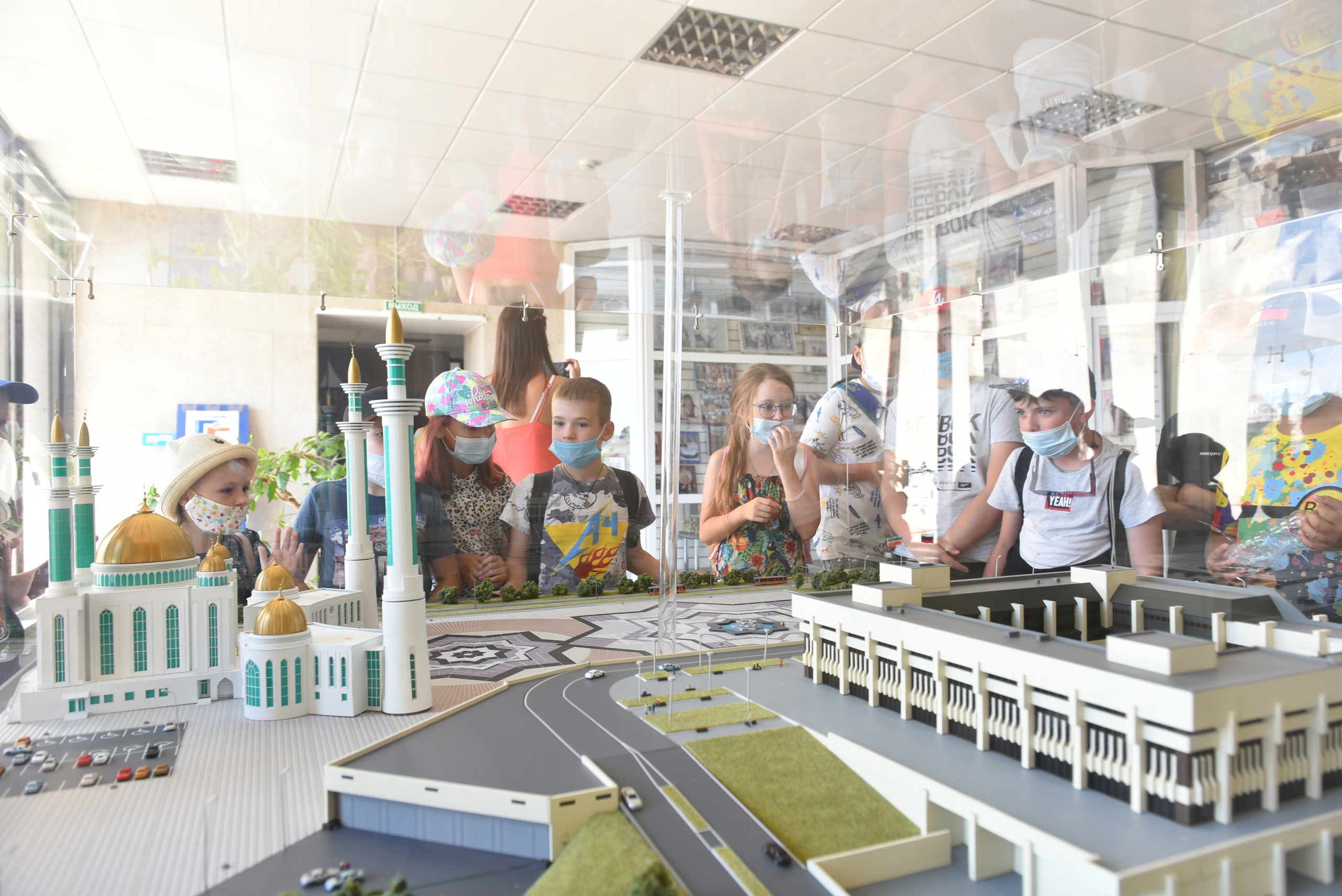 Экскурсия началась с первого этажа, здесь внимание гостей привлек проект строящейся мечети Джамиг.