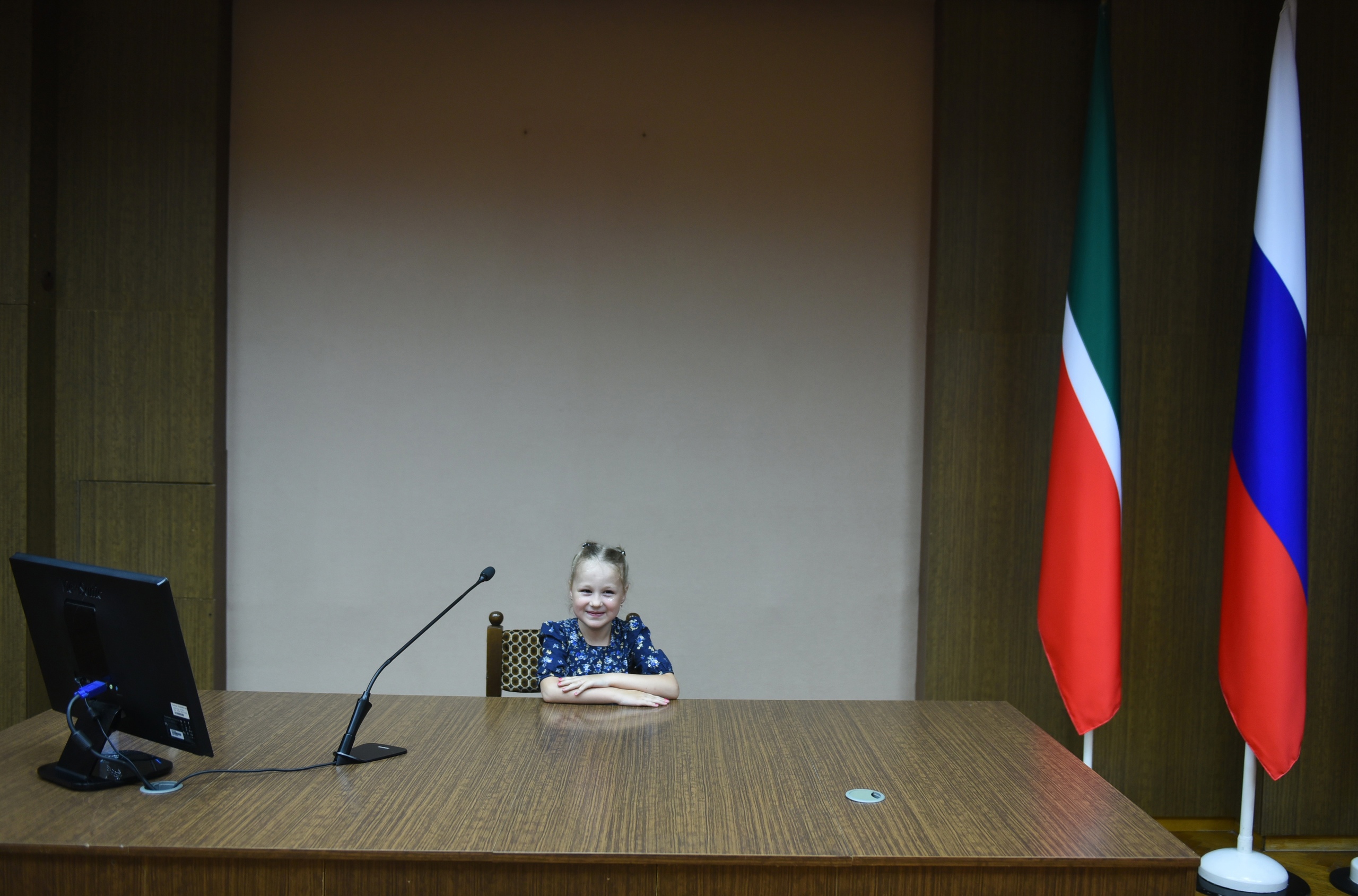В завершении экскурсии юные челнинцы сделали индивидуальные фотографии, посидев на кресле мэра.
