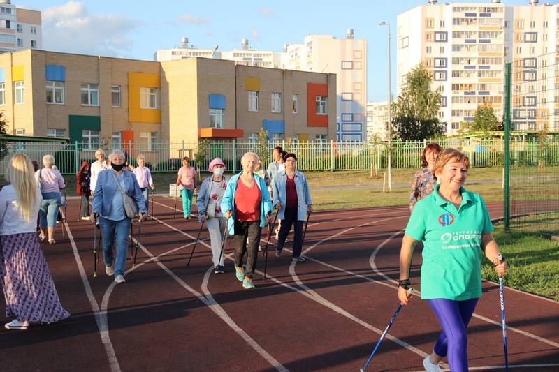 На территории школы № 41 прошел мастер-класс по скандинавской ходьбе для челнинцев старшего поколения. Мероприятие было проведено для жителей 35, 36, 37 и 41 комплексов. Летний вечер собрал около 30 желающих научиться технике ходьбы. Занятие провела сертифицированный инструктор Роза Зайнулина.