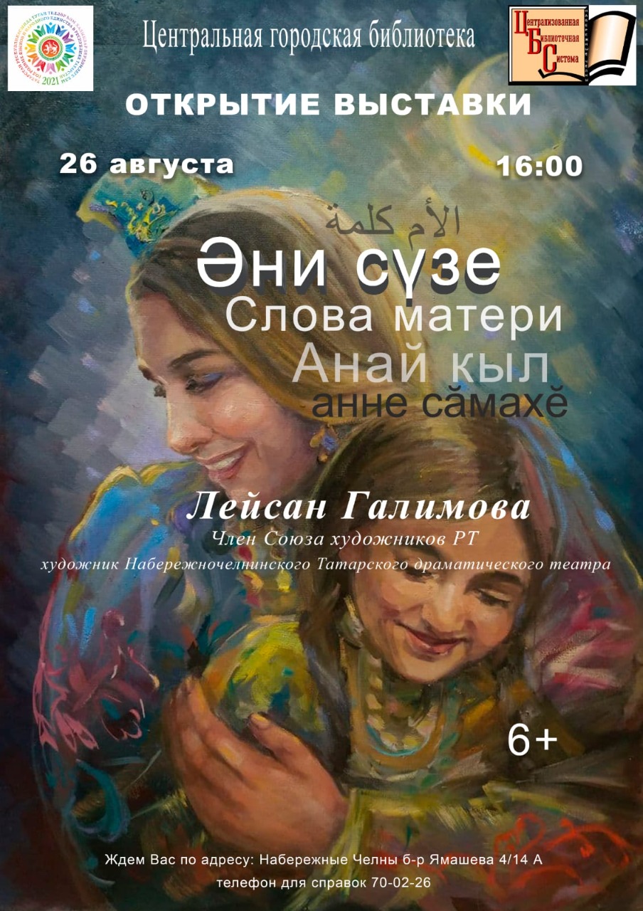 В Центральной городской библиотеке 26 августа в 16:00 состоится открытие персональной выставки члена Союза художников РТ, художника-декоратора Набережночелнинского государственного татарского драматического театра Лейсан Галимовой. Экспозиция посвящена Году родных языков и народного единства и Дню Республики Татарстана.