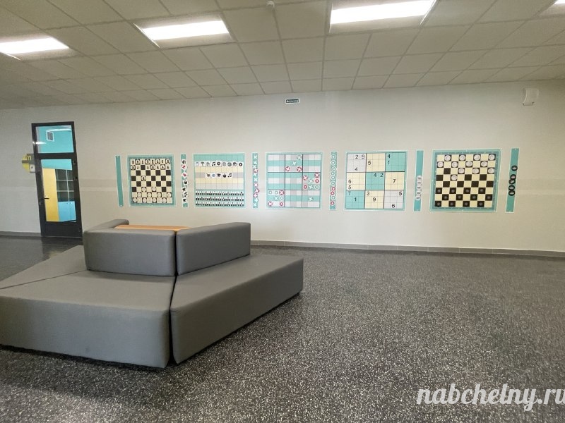 На втором этаже гимназии расположен так называемый интеллектуальный холл, это блок спокойных игр – шашки, крестики-нолики, шахматы, ребусы, судоку.
