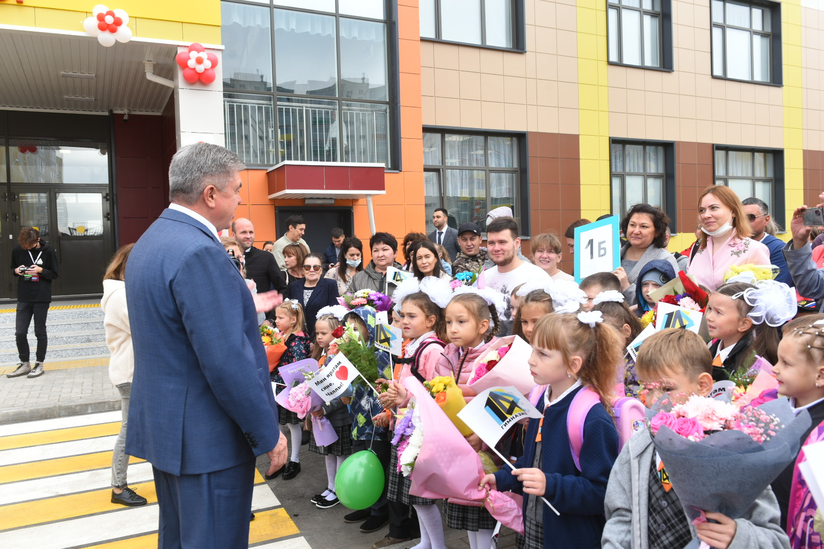 В Набережных Челнах празднуют День знаний. Мэр города Наиль Магдеев побывал во вновь открывшейся гимназии №14 в Замелекесье, поздравив с праздником учителей, школьников и их родителей.