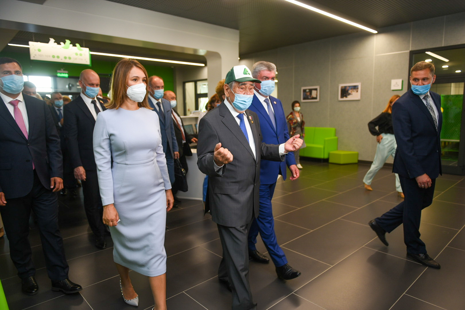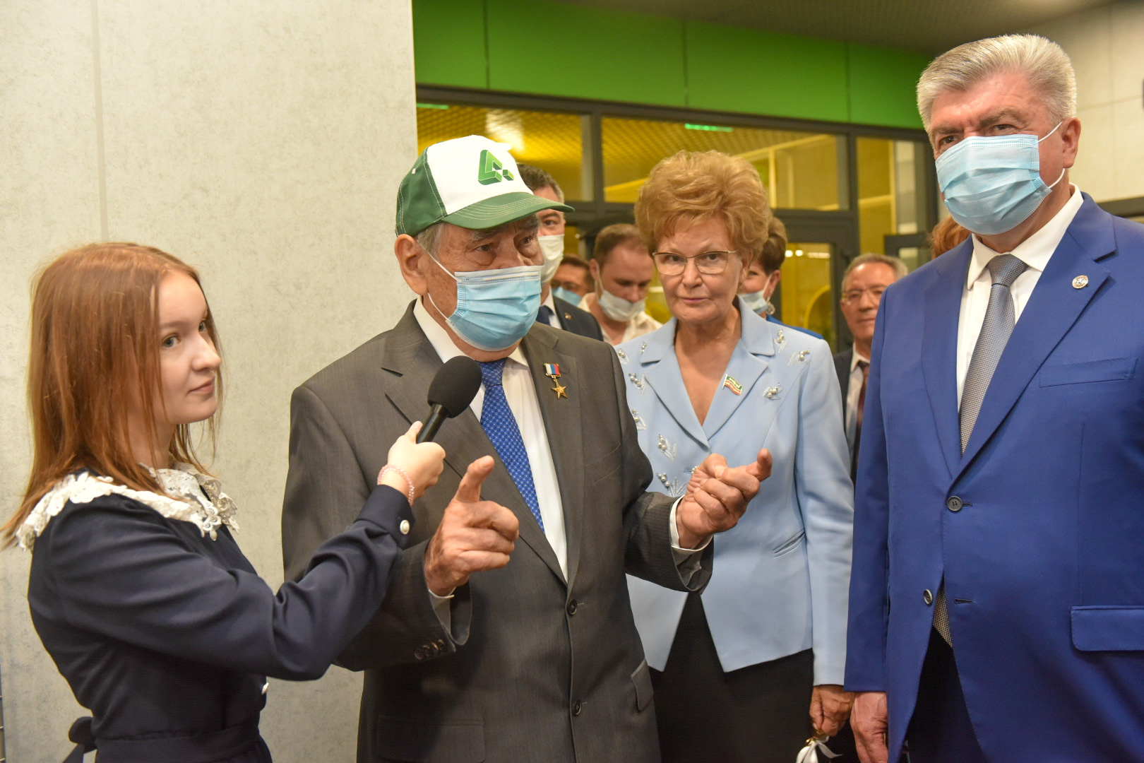 Государственный Советник РТ Минтимер Шаймиев, зампредседателя Госсовета РТ Татьяна Ларионова, мэр Набережных Челнов Наиль Магдеев и депутат Госдумы РФ Альфия Когогина побывали внутри гимназии и пообщались с ребятами, которые будут обучаться в "Адымнар-Чаллы".
