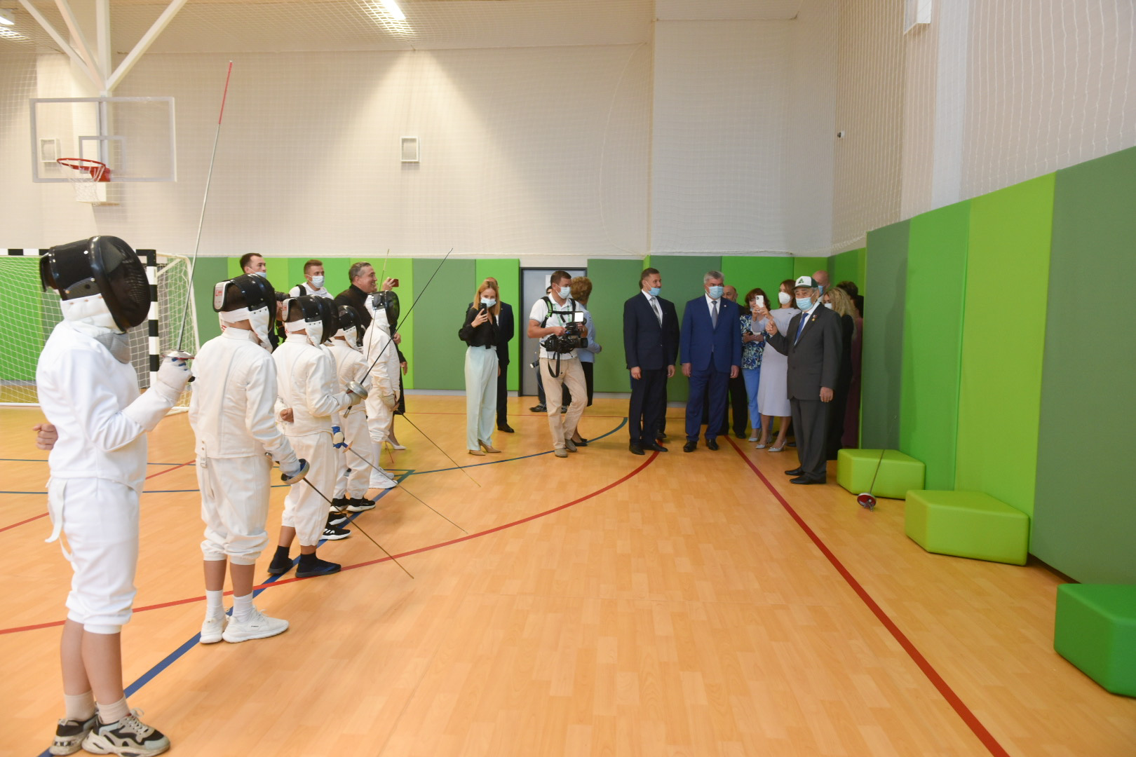 Осмотрел Государственный Советник РТ и бассейн, в котором размещены две чаши. Как пояснил Минтимеру Шаймиеву директор гимназии Азат Галиев, здесь помимо привычного плавания запланирована секция подводного плавания - впервые в стенах общеобразовательного учреждения в автограде.