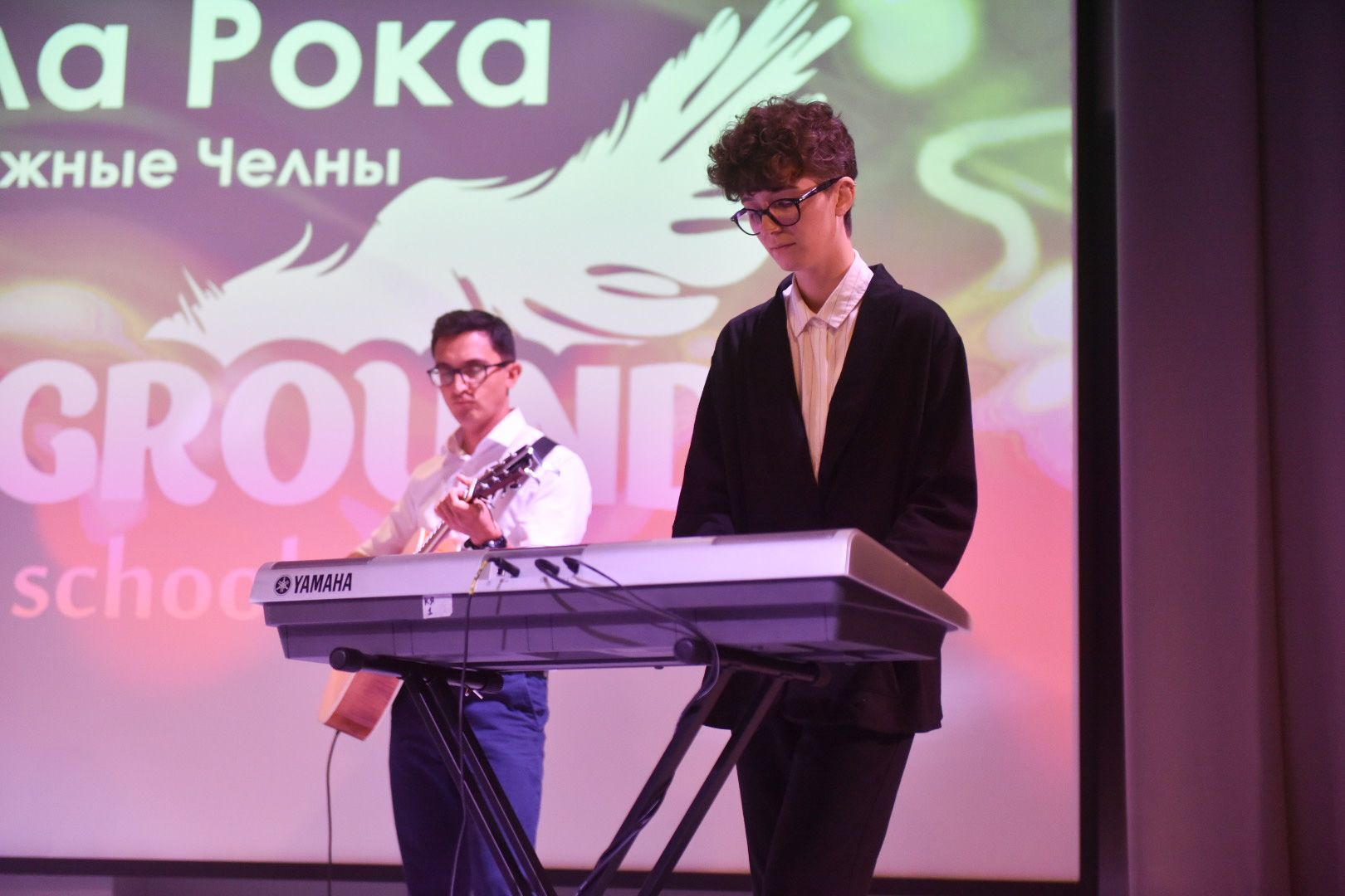 Актовый зал, рассчитанный на 560 мест, уже привлек внимание организаций для проведения важных мероприятия. Так, в гимназии в этом зале будет заниматься сразу несколько творческих объединений, в том числе и "Школа рока". Участники исполнили песню для гостей и получили заслуженные аплодисменты.