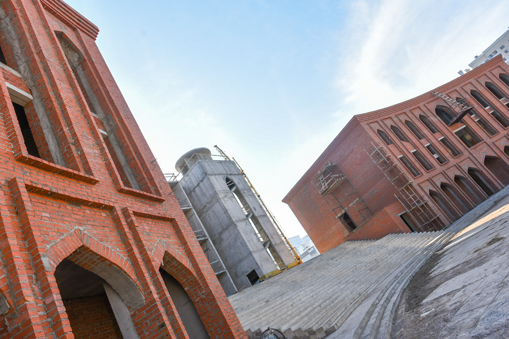 Директор Фонда финансовой поддержки строительства соборной мечети Джамиг Уел Галимов сообщил, что строительство ведется, сегодня в числе первоочередных задач – укладка кровли, заказ куполов.