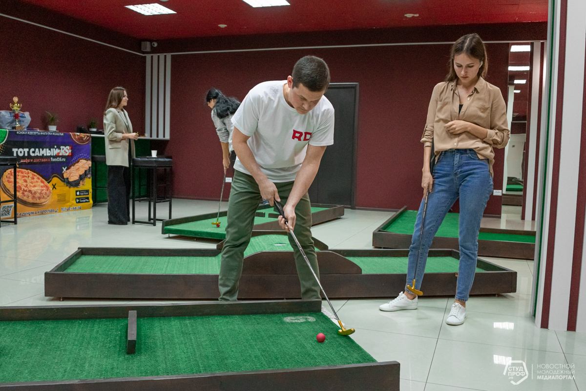 Стоит отметить, что этот вид спорта вошел в Спартакиаду работающей молодежи впервые и вызвал большой интерес у участников. Игрокам необходимо было клюшкой загнать мяч в лунку при наименьшем количестве ударов. Команды играли на 12 дорожках разной степени сложности.