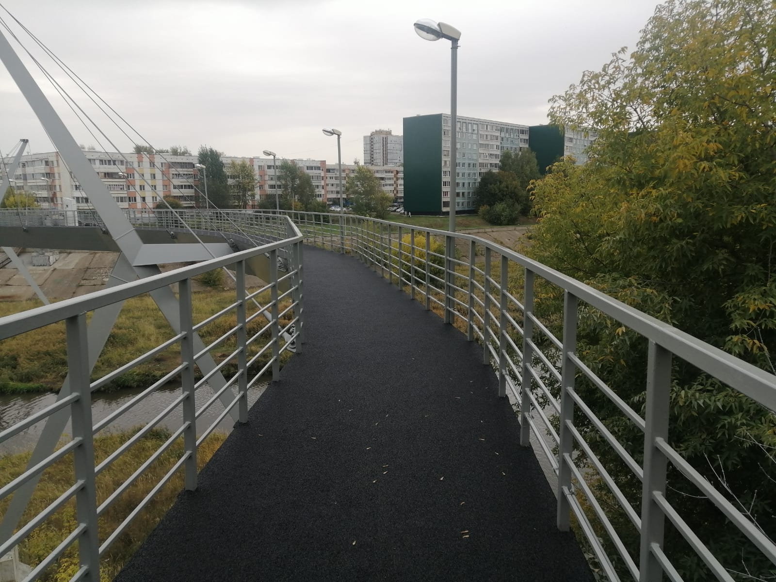 Ремонтные работы на мосту, который соединяет поселки ЗЯБ и Элеваторная гора, завершены. Здесь было выполнено покрытие прорезиненной крошкой. Ремонт сотрудниками МУП "ПАД" выполнялся не долго – меньше недели, однако его пришлось проводить дважды, потому что вандалы испортили свежевыложенное покрытие.