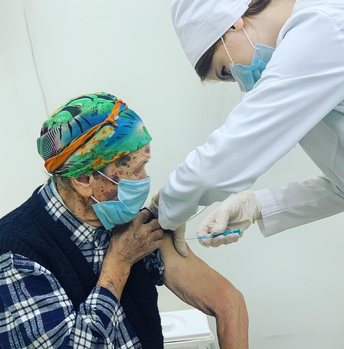 91-летняя Лидия Егоровна Красноперова - ветеран Великой Отечественной войны, труженик тыла, пришла в поликлинику №7 для повторной вакцинации вместе с сыном Александром Николаевичем.  Как и в первый раз, решение  вакцинироваться приняла сама и убедила сына: «Только так можно победить эту заразу!».