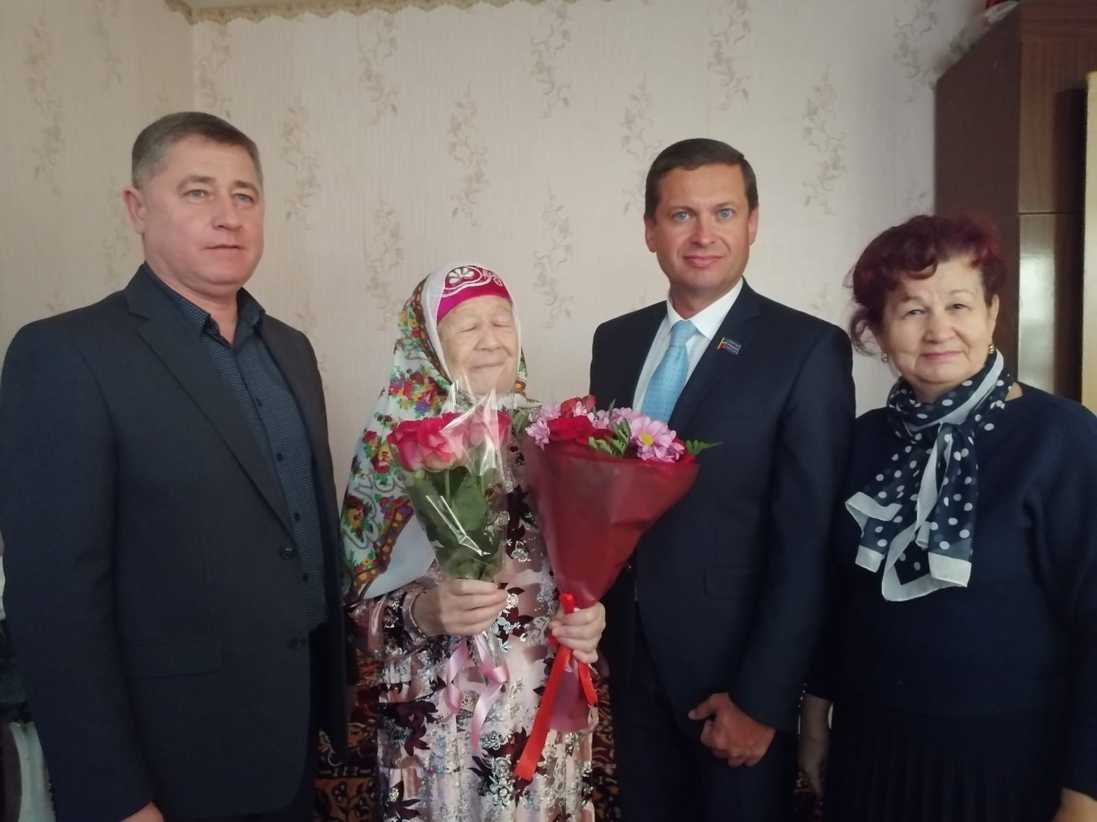 Ветеран получила поздравления от имени Президента РФ Владимира Путина, мэра города Наиля Магдеева, главы администрации Центрального района Искандера Галимова. К поздравлениям присоединились депутат Городского Совета Эдуард Фаттахов, генеральный директор УК «Электротехников» Дмитрий Пыхтенков, а так же председатель ТОС Дуррия Ризатдинова.