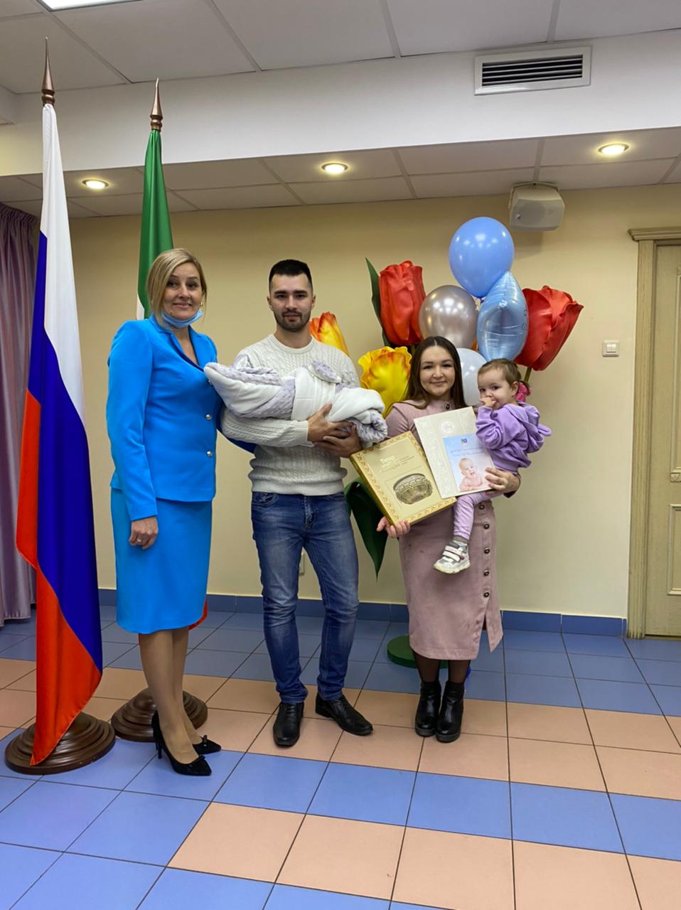 Главный специалист управления ЗАГС Ландыш Хафизова поздравила родителей с рождением сына и вручила Свидетельство о рождении ребенка, поздравительные адреса от имени президента Республики Татарстан и мэра города, а также памятный подарок.