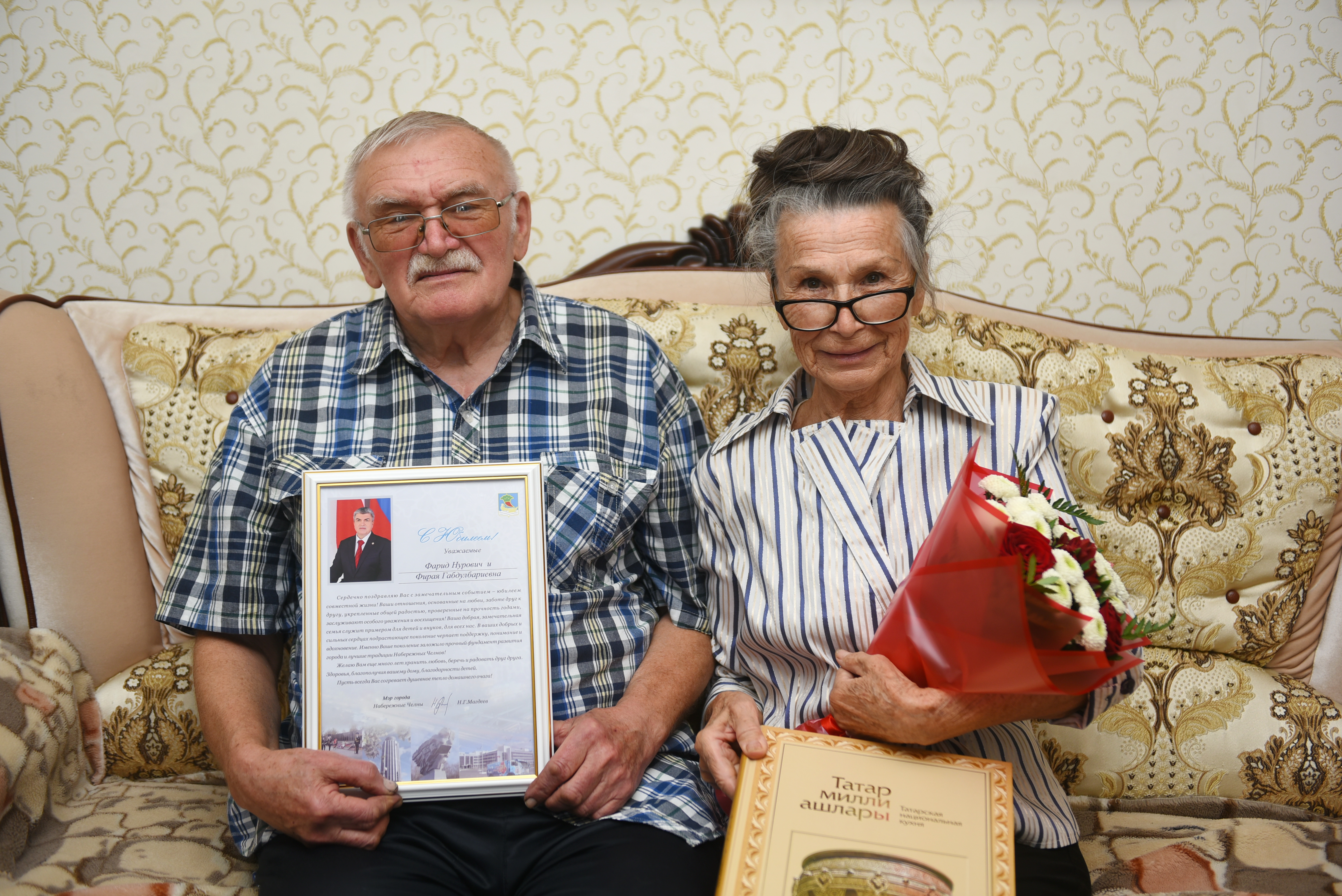 Полвека прожили вместе Фирая Бариевна и Фарид Нурович Набиуллины. 50 лет назад, зарегистрировав свой брак в Казани, по распределению ВУЗа они были направлены в Набережные Челны на Всесоюзную комсомольскую стройку. Здесь, у супругов родилась дочь, которая впоследствии подарила им внука.