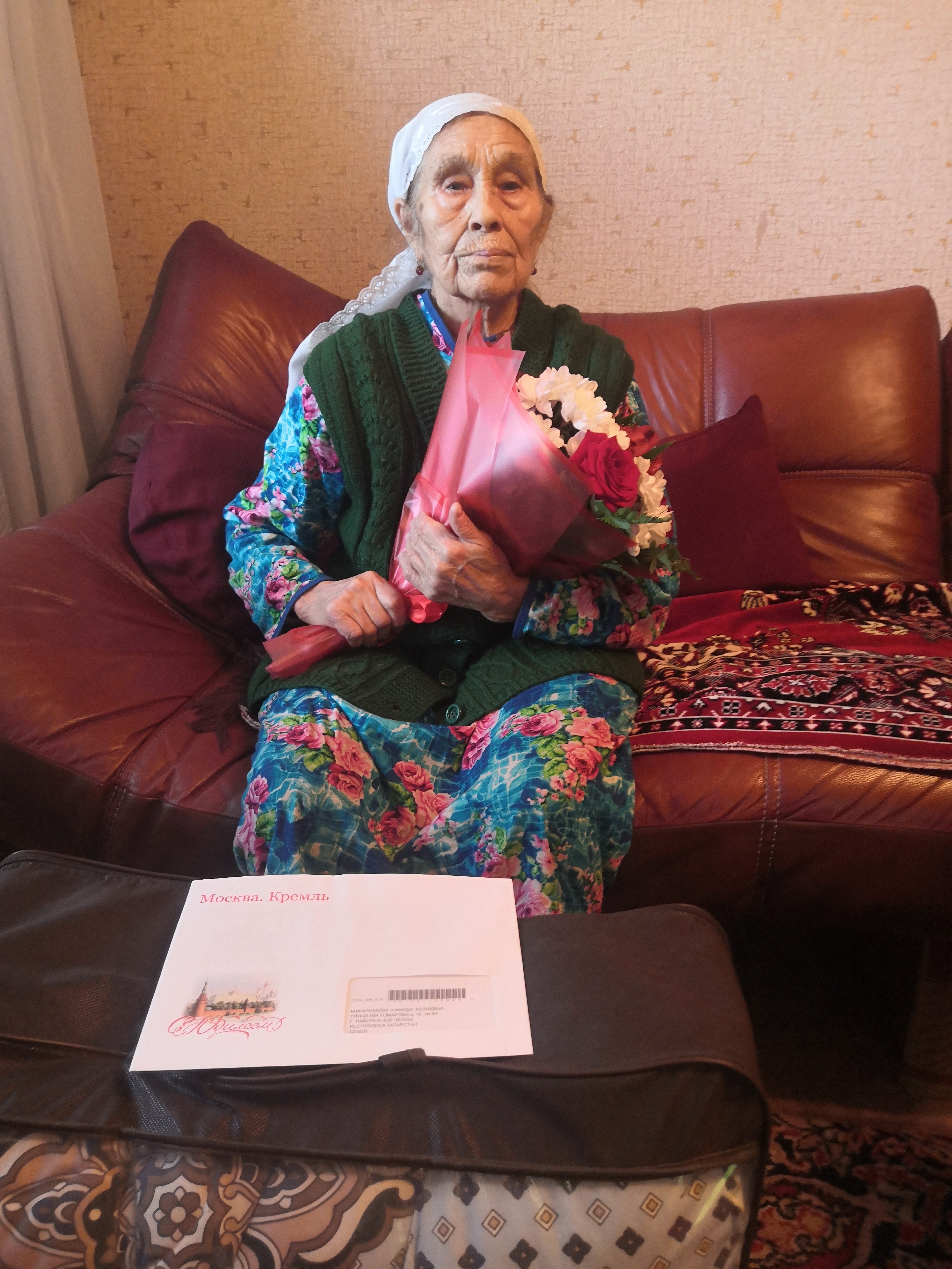 Поздравления и подарки от имени Президента РФ Владимира Путина, мэра города Набережные Челны Наиля Магдеева и депутата Городского Совета Альберта Петрова юбиляру вручила И.о. заместителя главы администрации Комсомольского района Алсу Хамматова.