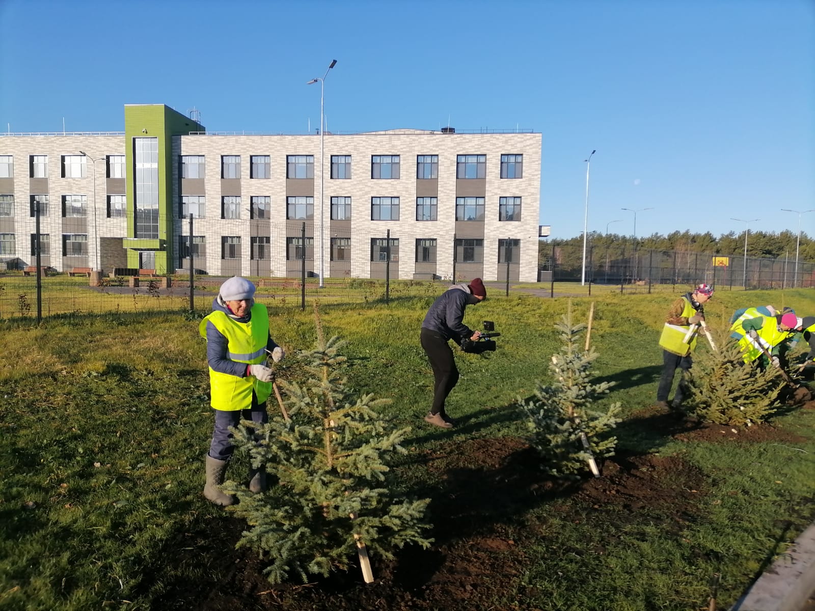 На территории 7, 18, 3, 42, 58, 44, 13, 60, 12, 2, 14 комплексов Центрального района с участием ТОС и жителей комплексов осуществлена посадка 283 елей, сосен и кустарников.