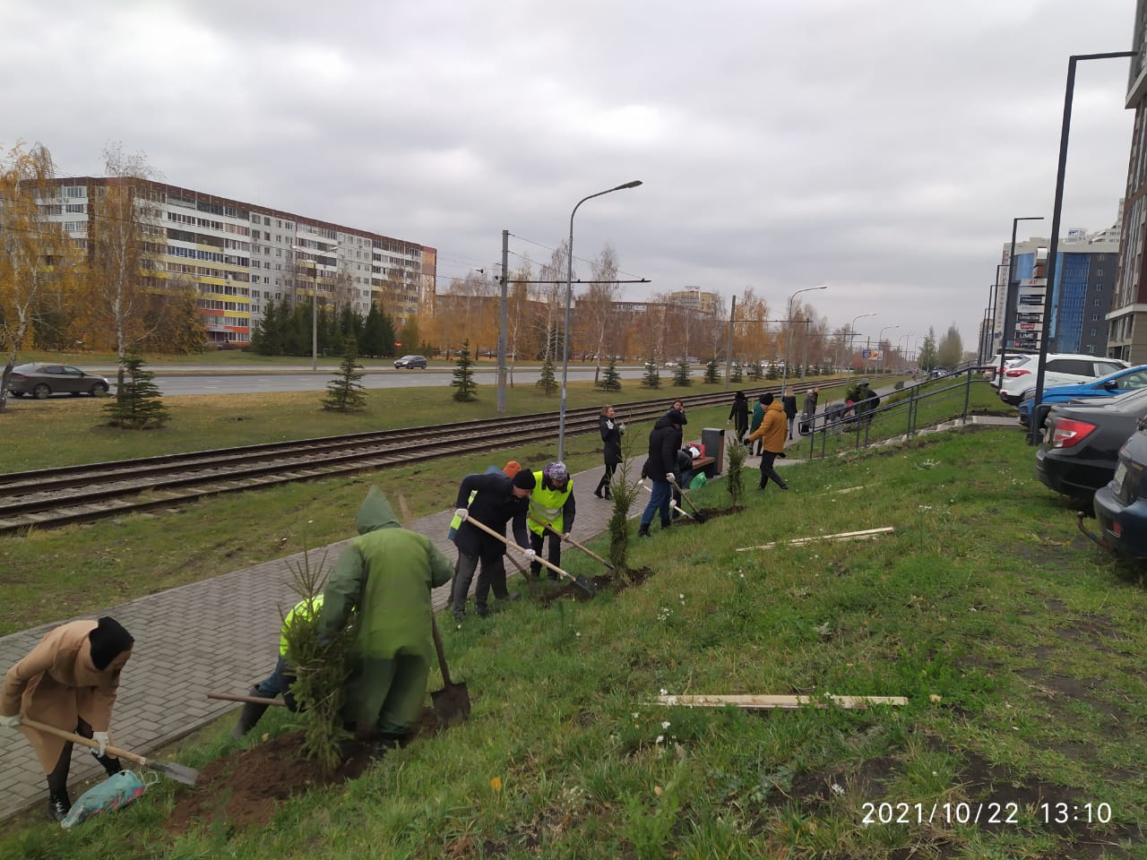 Возле ЖК «Сердце города» по проспекту Сююмбике представителями застройщика ООО «Талан» и ОАО «Горзеленхоз» произведена посадка 40 елей.