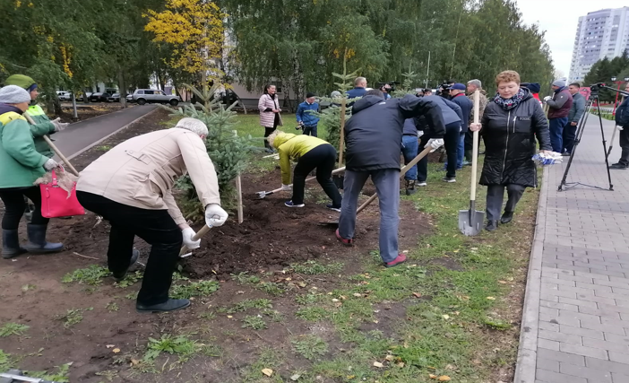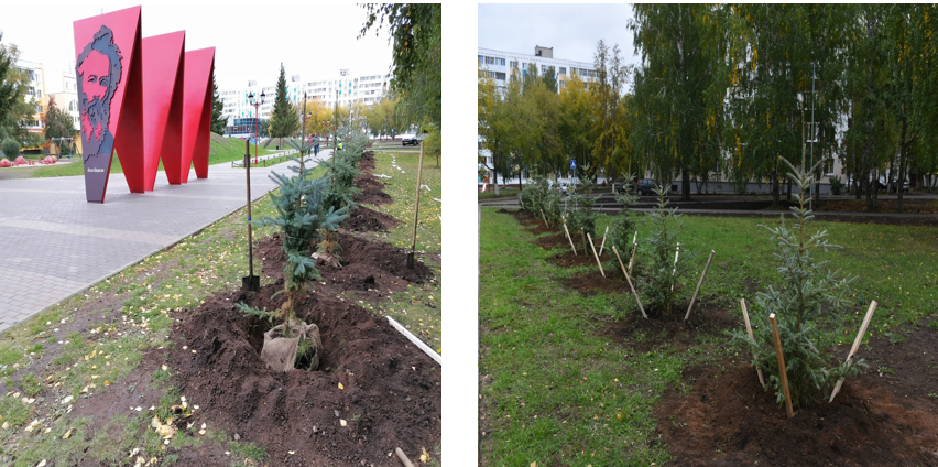 осуществлена посадка голубых елей на территории Шишкинского бульвара.