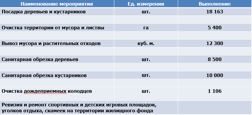 В ходе проведения осеннего месячника выполнены виды работ:
