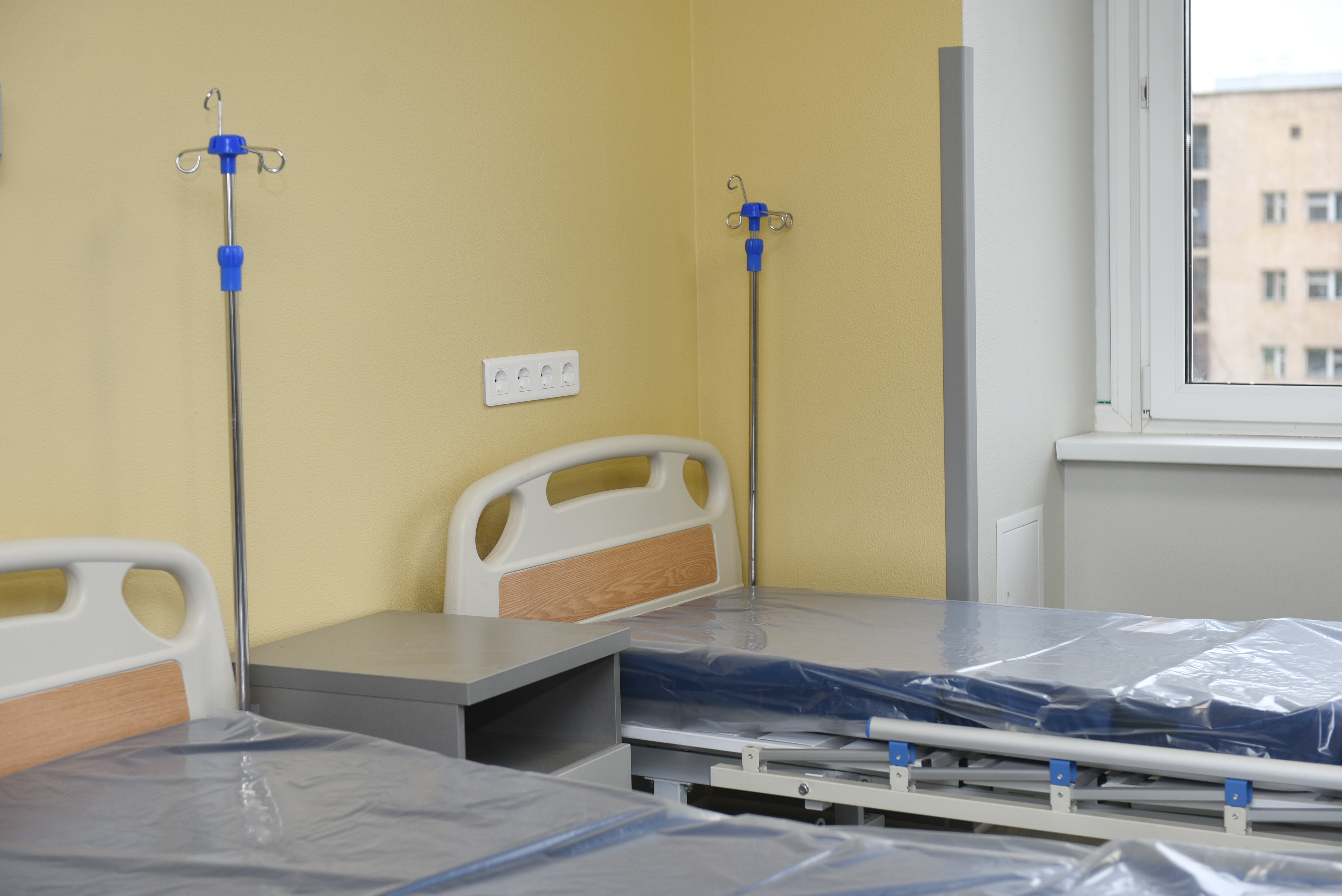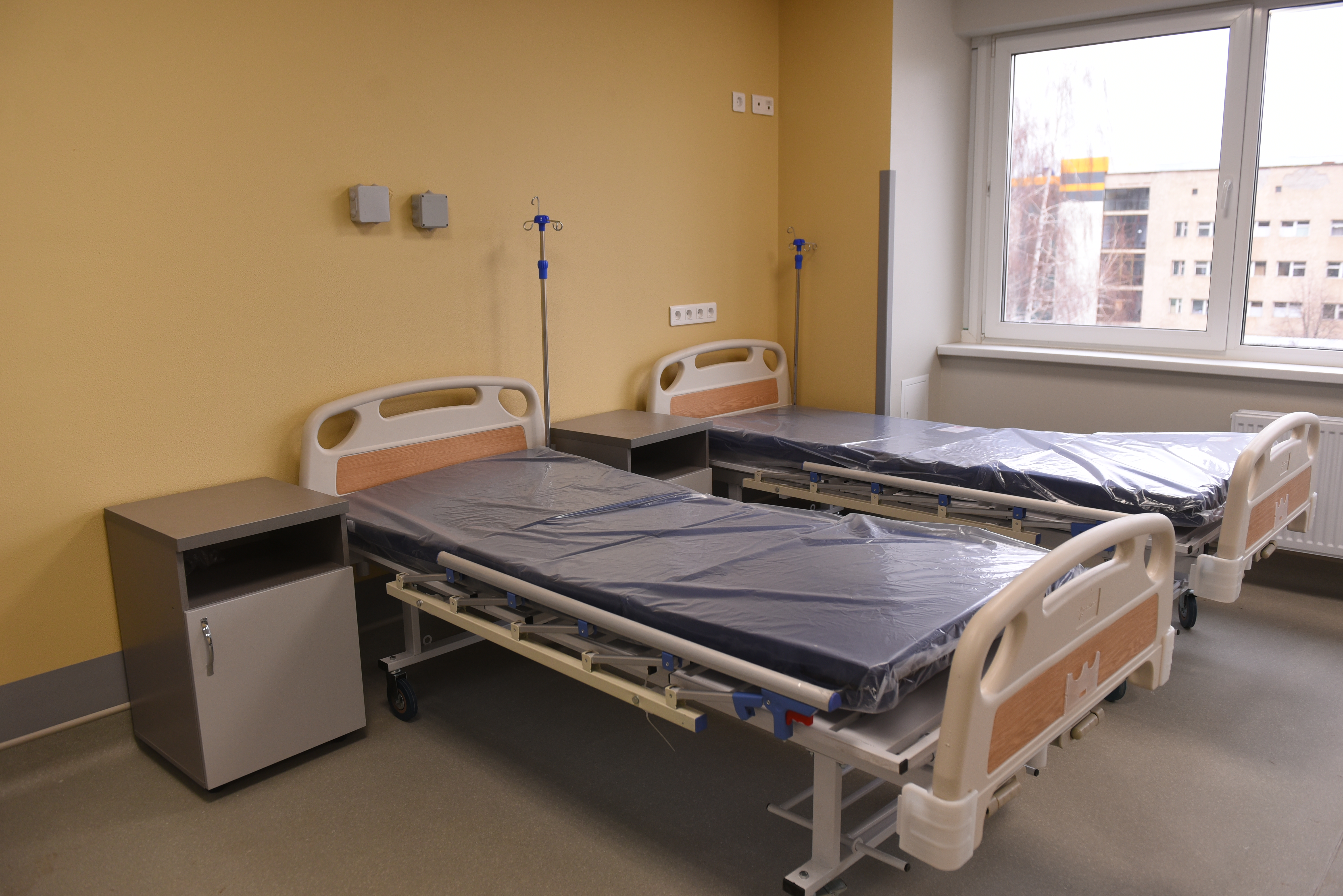 «На третьем этаже – взрослое отделение, на втором – детское, сообщил главный врач. – В каждой палате кондиционеры, микроволновки, холодильники, специальные консоли. Учитывая ситуацию с ковидом, на каждую консоль подключены по две кислородные точки – это позволит подать кислород на две койки».