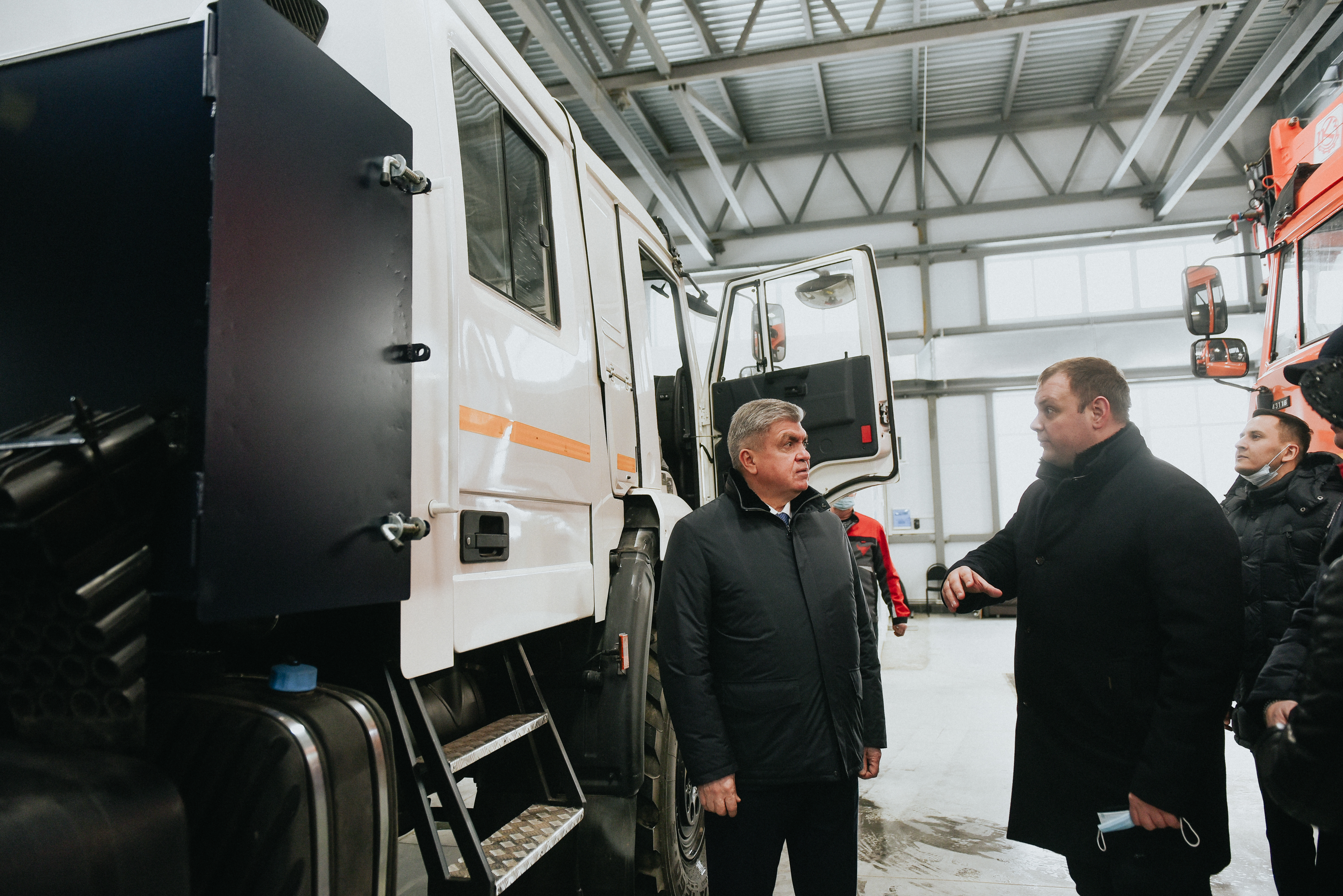 Осмотр начался с предприятия «Трак Плэнет» – одного из первых резидентов промышленного парка. Здесь собирают грузовые автомобили на базе шасси КАМАЗ и УРАЛ и оснащают его дополнительными опциями, необходимыми для заказчиков.
