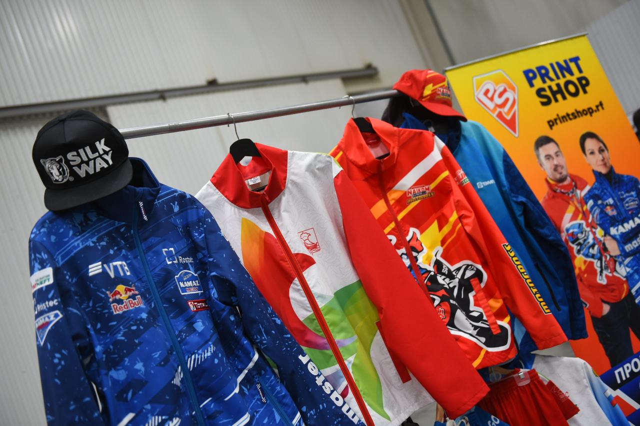 Выставочные образцы брендированных костюмов с символикой города и команды "КАМАЗ-мастер"  показала организация Printshop.