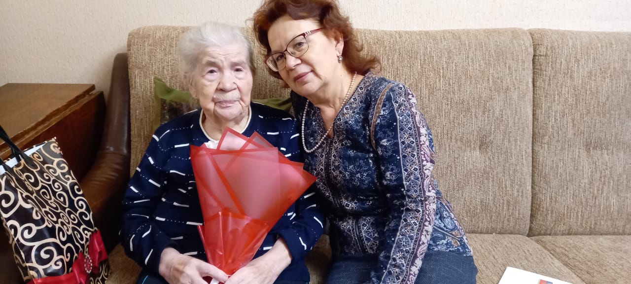 Юбиляру передали подарки и поздравления от имени Президента РФ Владимира Путина, мэра Набережных Челнов Наиля Магдеева, и.о.главы Центрального района Алексея Тарабукина. К поздравлениям присоединилась председатель ТОС Наталья Гордеенко.
