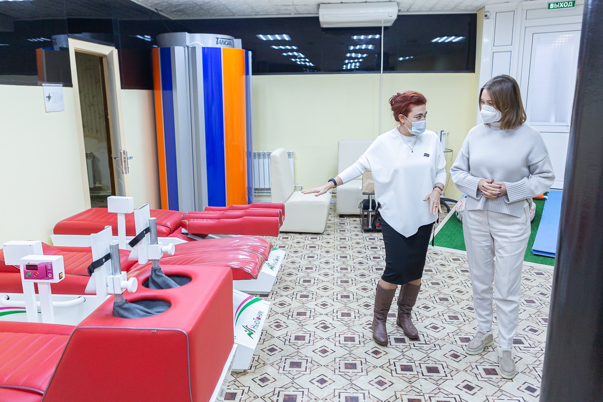 В ходе визита депутат ознакомилась с работой спортивного зала «АртФит», оснащенного современными кардиотренажерами, спортивными снарядами и специальными тонусными столами, которые позволяют тренироваться и развивать мышцы детям, которые не могут выполнять спортивные упражнения самостоятельно, а также встретилась со специалистами центра.