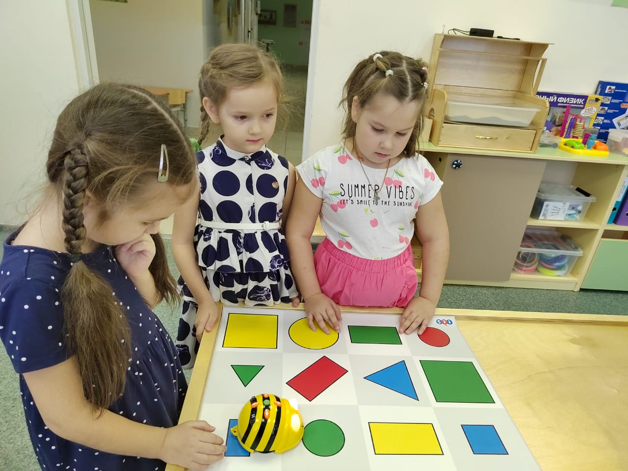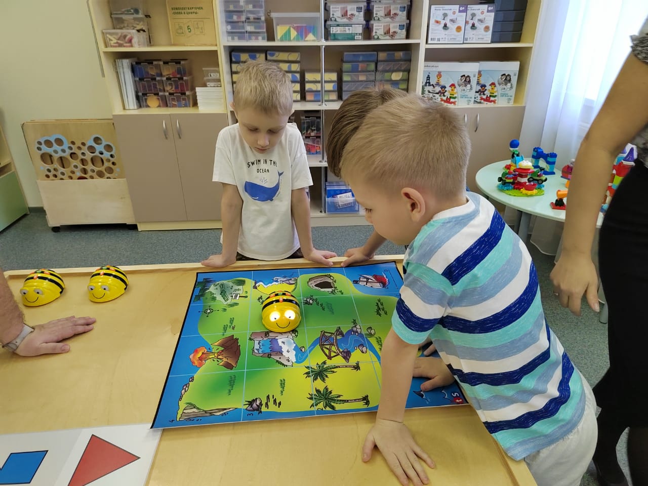Воспитанники продемонстрировали гостям навыки программирования и алгоритмики в работе с пособием «ЛогоРобот Пчелка».