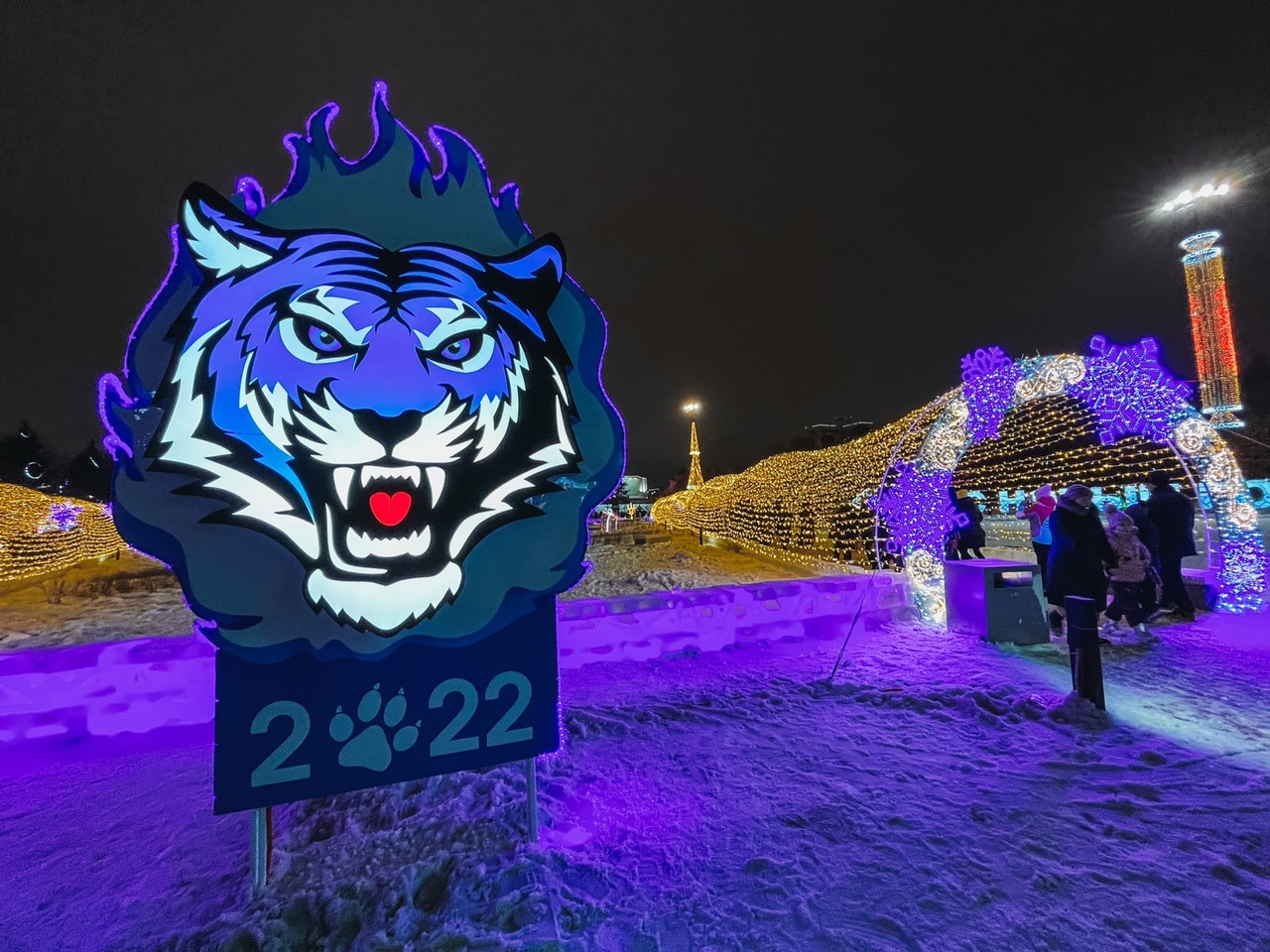 Перед зрителями прошла карнавальная колонна: снеговики, медведи, деды морозы и шахматные фигуры, на главной сцене выступили творческие коллективы и солисты города.