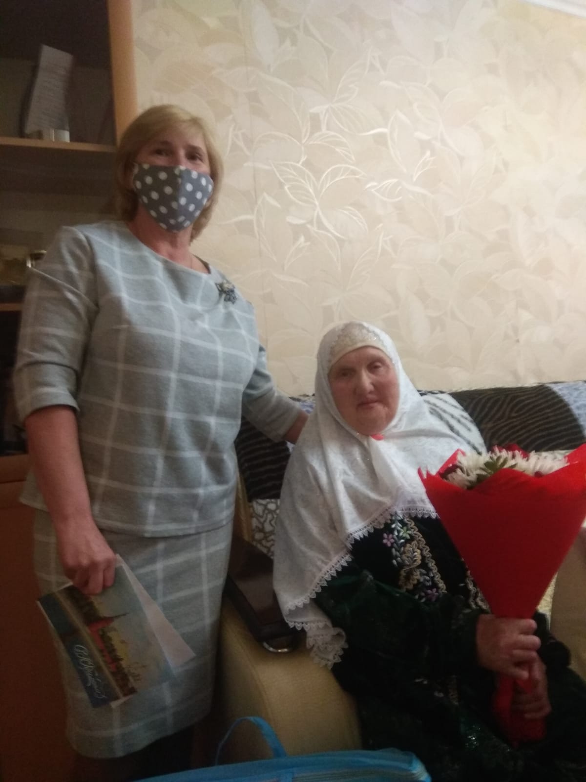 Валентине Васильевне Зайцевой и Миннегадие Зиятдиновне Зиятдиновой передали подарки и поздравления от имени президента России Владимира Путина и мэра Набережных Челнов Наиля Магдеева.