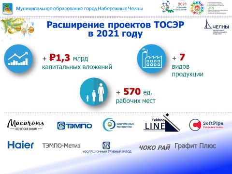 Благодаря режиму ТОСЭР Набережные Челны сегодня – не только родина производства тяжёлых грузовых автомобилей, но и центр высокотехнологичной бытовой техники, спортивного инвентаря, различного оборудования и пищевой продукции.