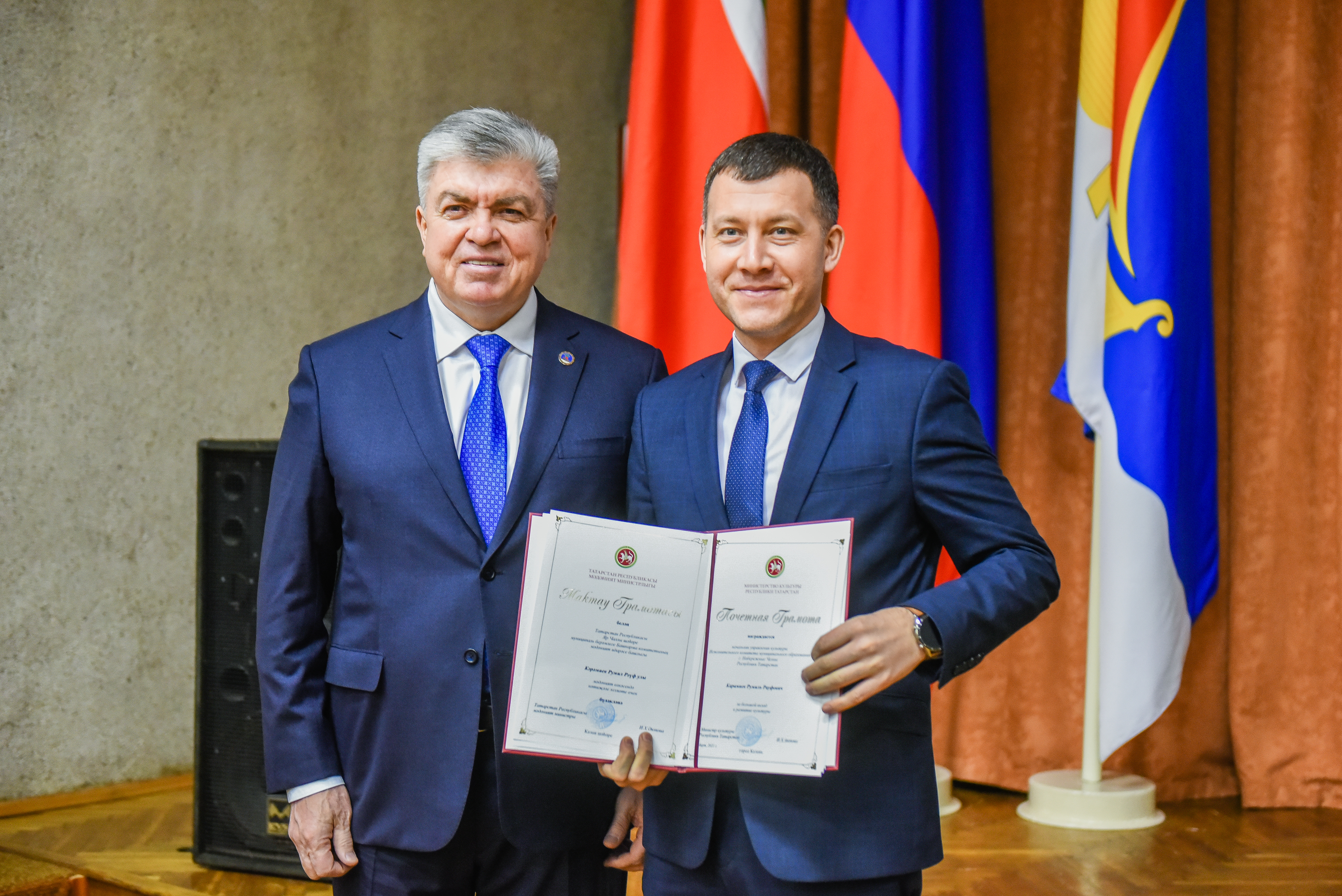 Наиль Магдеев вручил награды отличившимся сотрудникам. Почетной грамотой и благодарственными письмами награждены сотрудники управления ЗАГС, управления земельных и имущественных отношений, организационного отдела исполкома, отдела обеспечения деятельности мэра, управления культуры, управления делопроизводством, администрации районов.