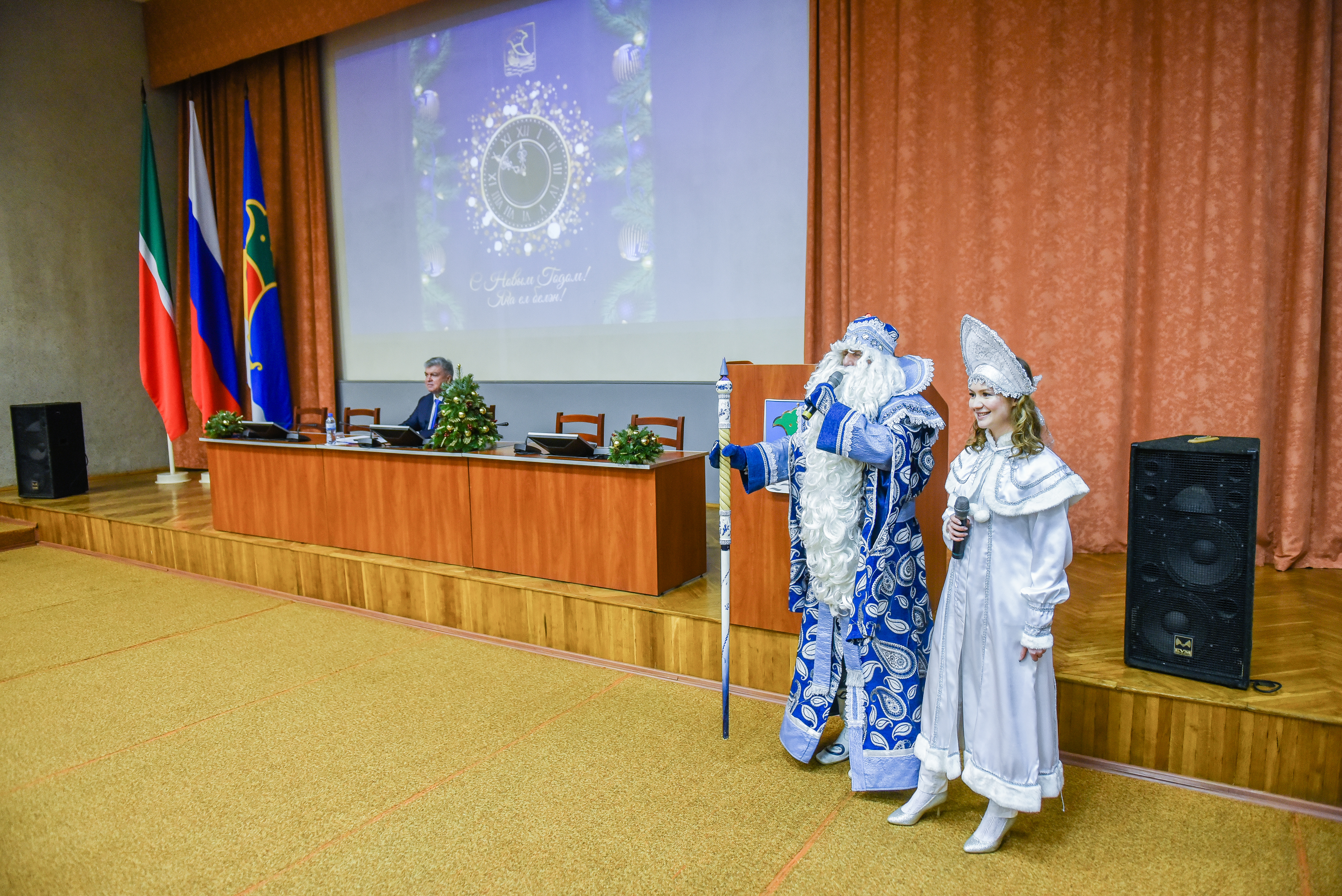 Наиль Магдеев поздравил сотрудников Исполнительного комитета с наступающим Новым годом. Глава города поблагодарил коллектив за эффективную работу в уходящем году: «Уважаемые коллеги! Работа с людьми - это всегда непросто. Каждый из вас вносит вклад в обеспечение благополучной жизни полумиллионного города. Мы вместе с вами выполняем обязательства перед жителями города, перед 534 тысячами челнинцев. Значимость вашей работы порой не видна, она не публичная, но от её слаженности зависит общее благосостояние города», - отметил он.