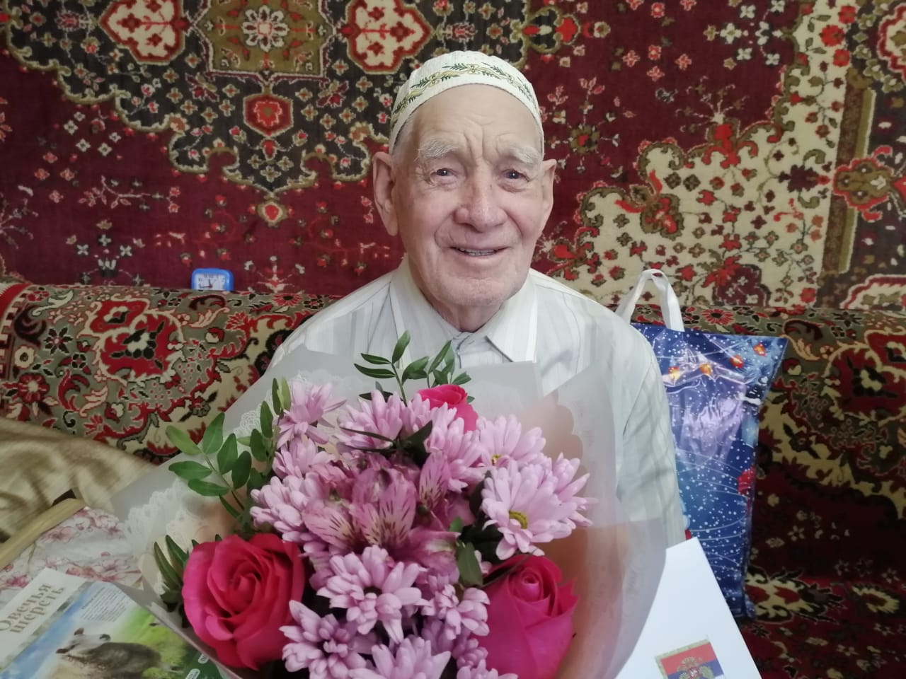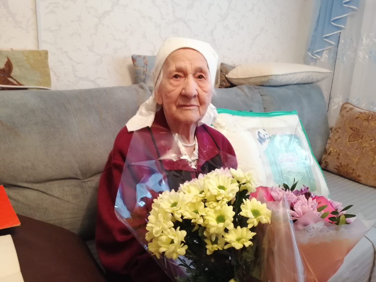 РФ Президенты Владимир Путин, шәһәр мэры Наил Мәһдиев исеменнән Бөек Ватан сугышы ветераннары Вәсига Сира кызы Нәбиуллина, Ольга Ивановна Шагарова, Минзыя Таһир улы Галимов юбилей белән котлауларны кабул итеп алдылар.