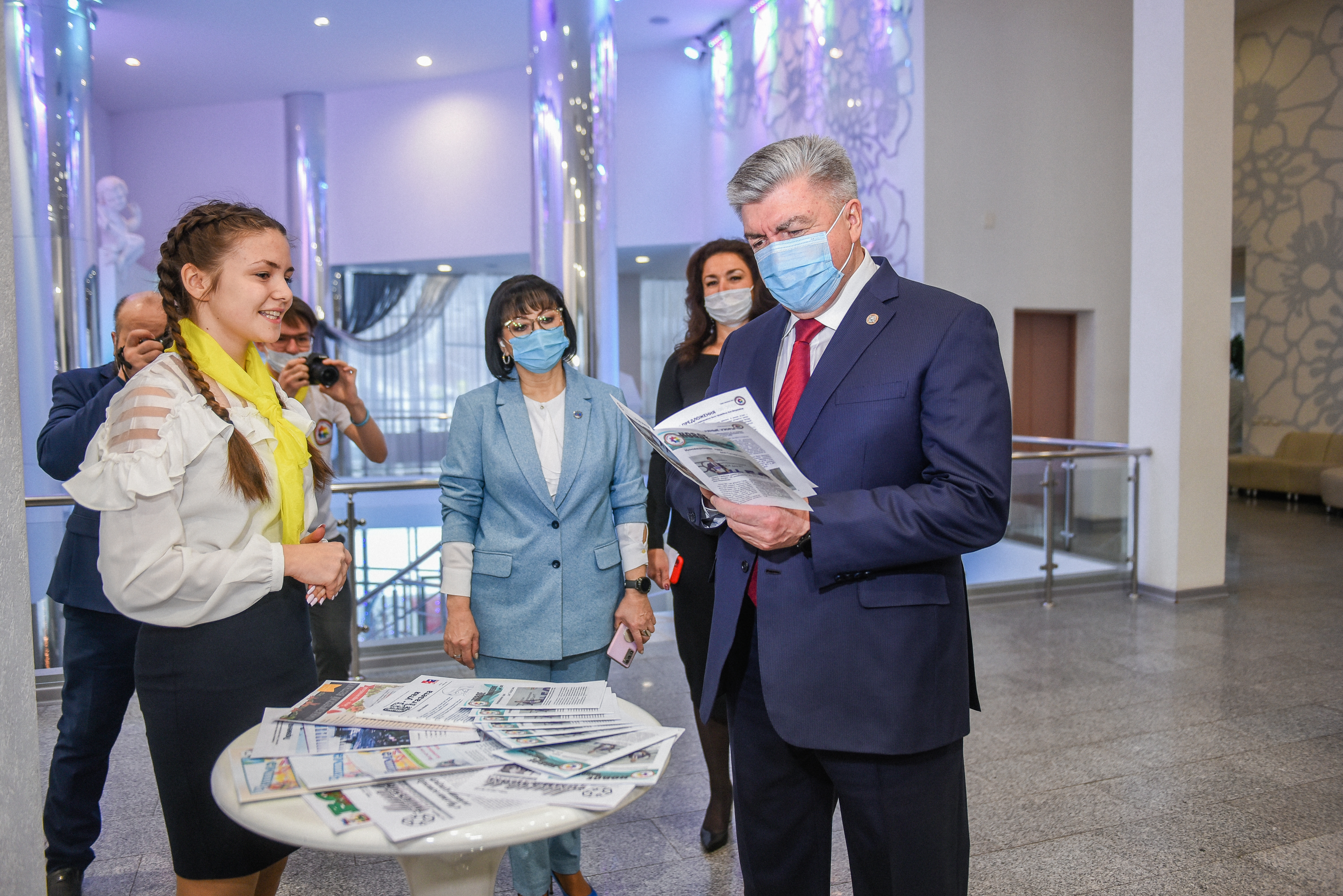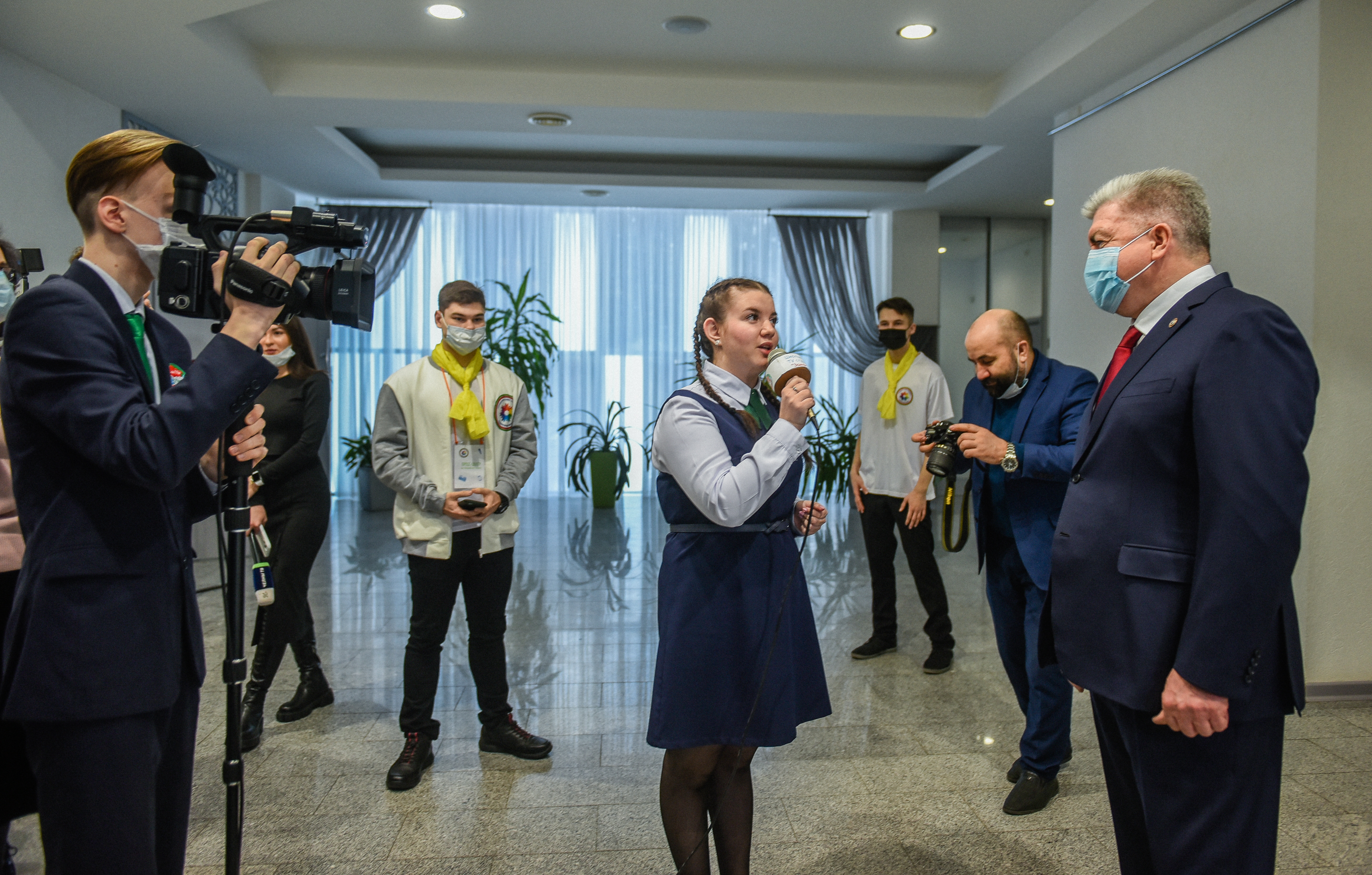 В торжественном мероприятии приняли участие и школьники Городского Совета учащихся. Они показали коллегам газету, которую выпускают сами, а также взяли интервью у мэра города.