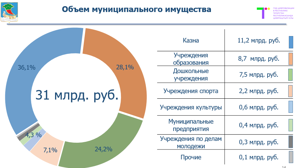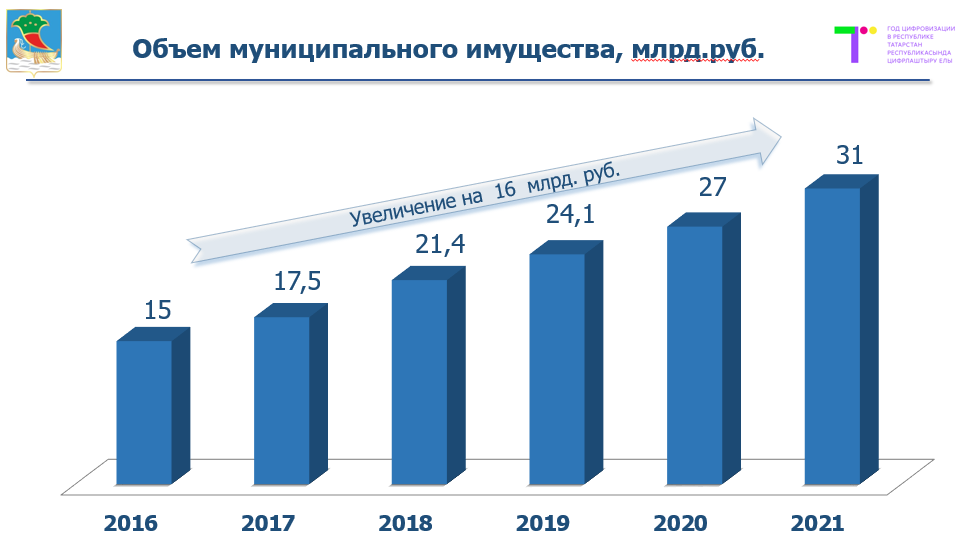 Эффективное использование ресурсов, находящихся в муниципальной собственности, зависит от полноты и качества их учета. Объем муниципального имущества составляет более 31 млрд рублей.