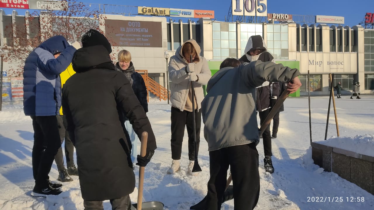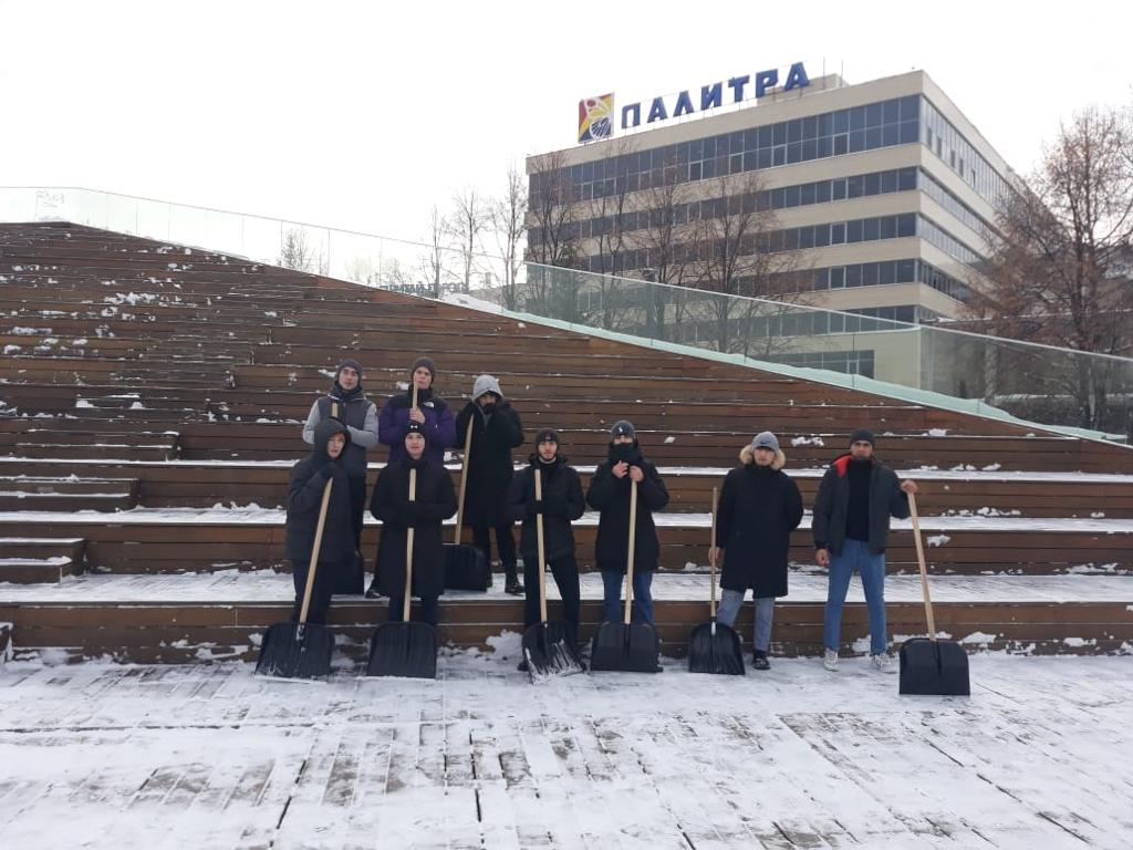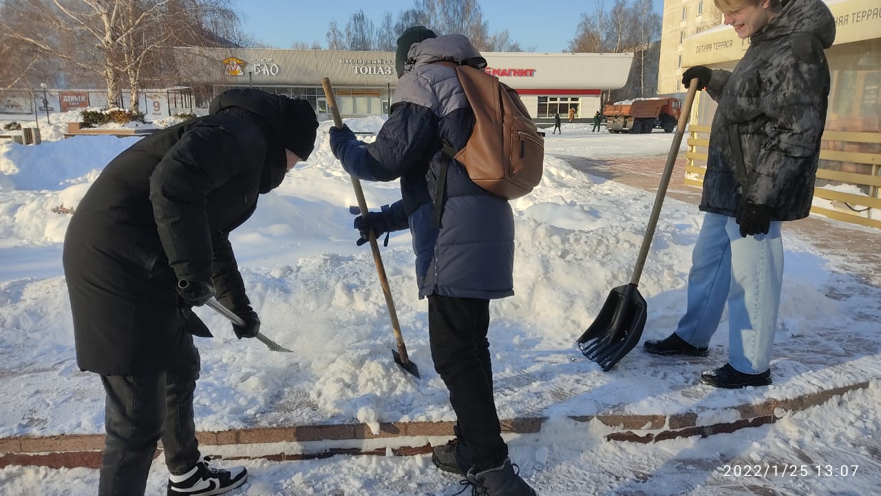 В Набережных Челнах студенты высших учебных заведений помогают дворникам расчищать парки и скверы города от снега. Так, учащиеся филиала Казанского Федерального университета очистили от снега площадь Азатлык. На бульваре Энтузиастов навели порядок студенты филиала Казанского инновационного университета.