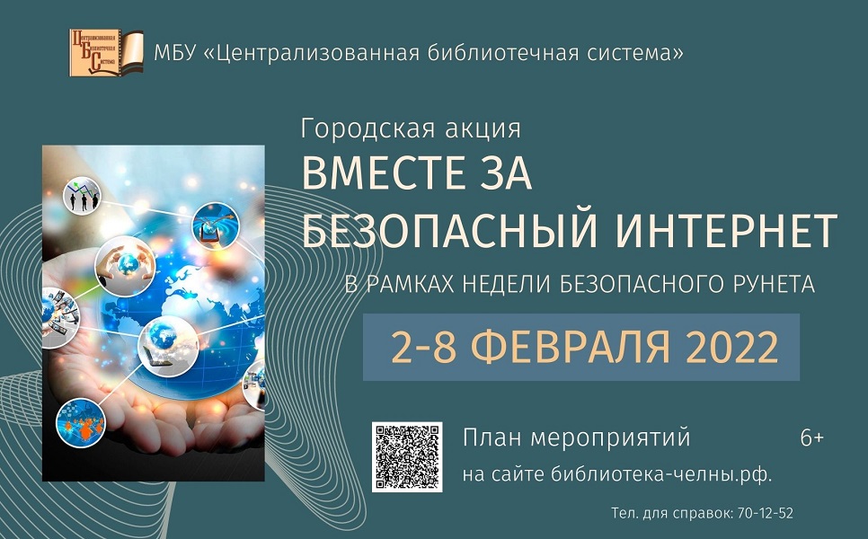 Со 2 февраля в библиотеках стартует городская акция «Вместе за безопасный Интернет».Программа мероприятий акции включает интерактивные познавательные программы и игры, викторины, беседы, книжные выставки и обучающие практикумы по вопросам противостояния угрозам в сети Интернет, защиты от вредоносных программ и правилам критического анализа информации. Дети и родители   познакомятся с технологиями безопасного общения в Интернете, защиты личных данных, эффективного обучения и позиционирования своего творчества в Интернете, а также с каталогом лучших безопасных детских ресурсов «Вебландия».
