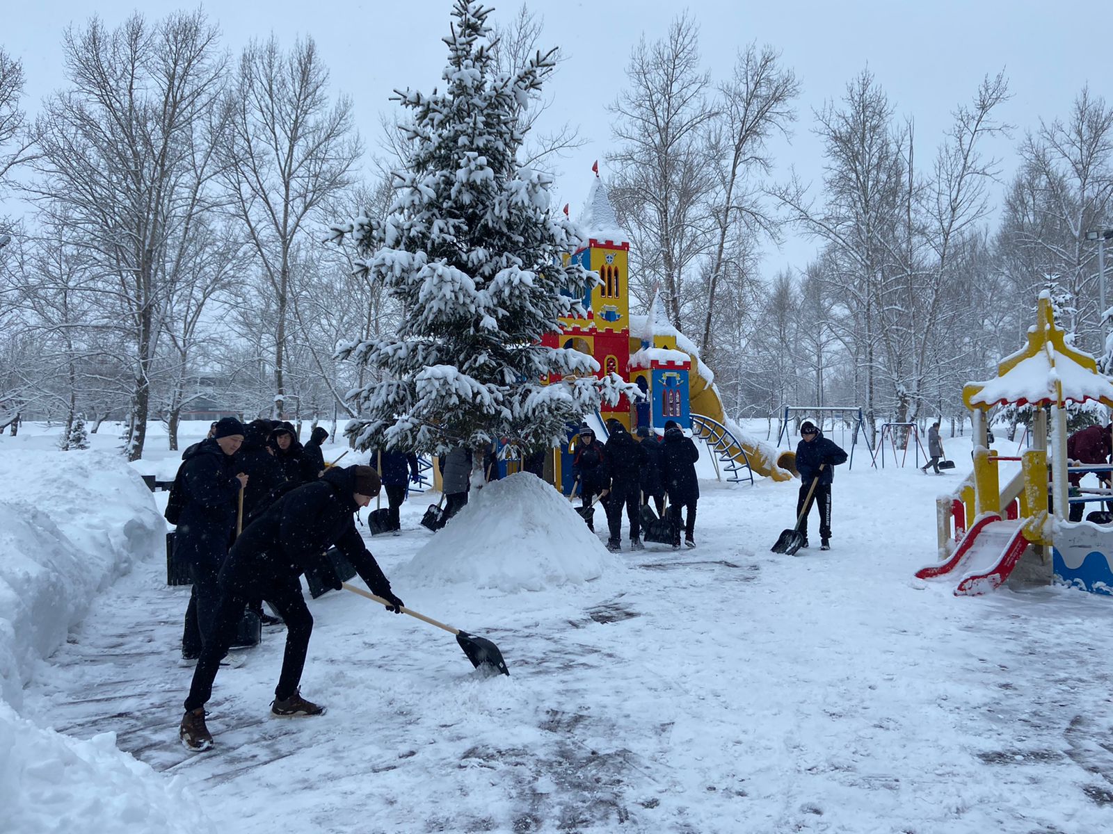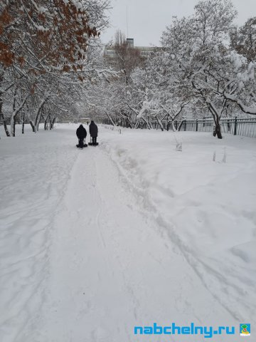Студенты Камского строительного колледжа им. Е.Н.Батенчука произвели очистку от снега детской площадки в парке "Сидоровка".