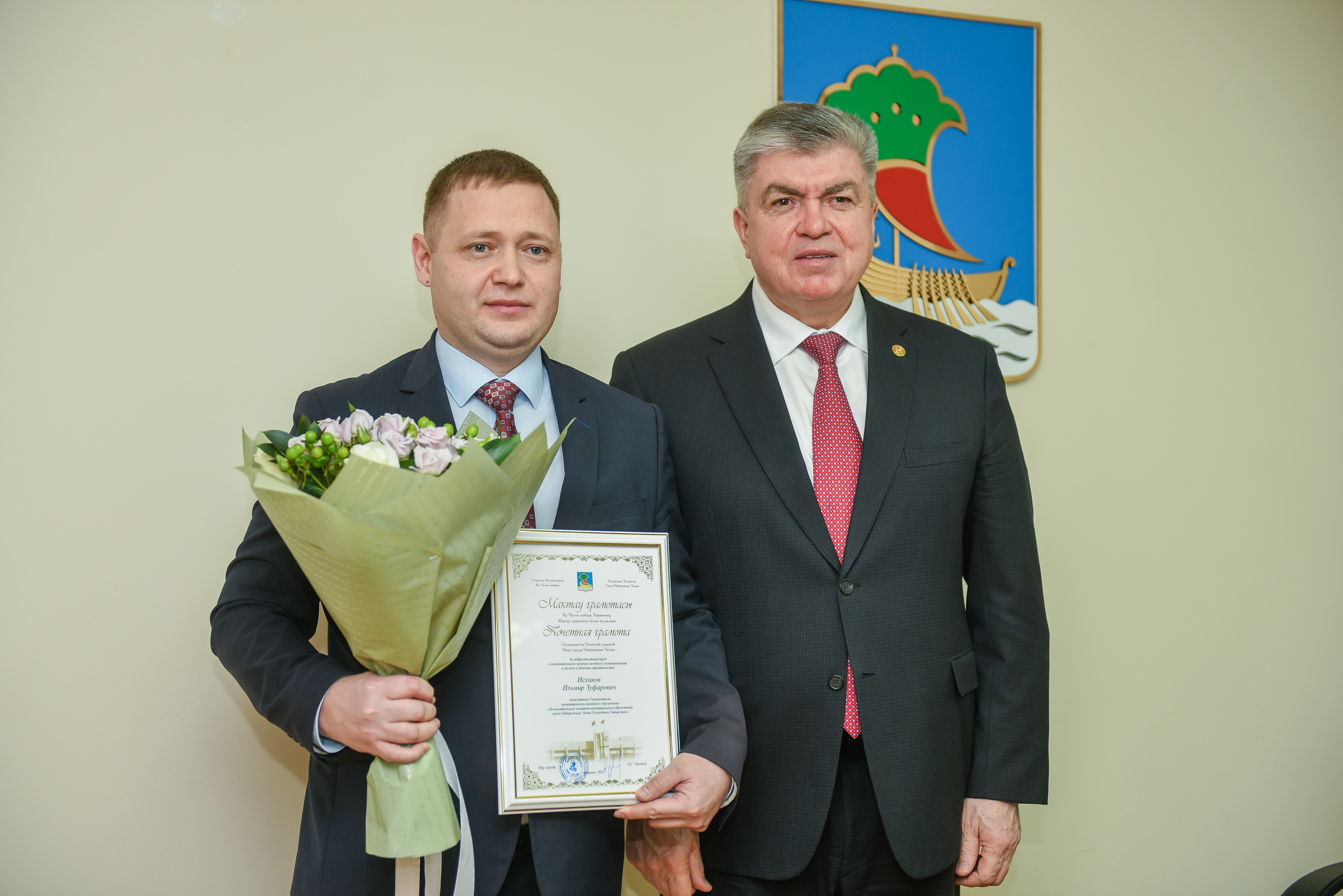 «Ильмир Зуфарович работал шесть лет с нами, показал достойные результаты, - вручая награду, отметил мэр города Наиль Магдеев и поблагодарил за совместную работу. – Здесь он был активным членом команды. За это время было построено достаточно много знаковых объектов социально-культурной сферы: школы, детские сады, объекты спорта, культуры. Был проведен капитальный ремонт объектов».
