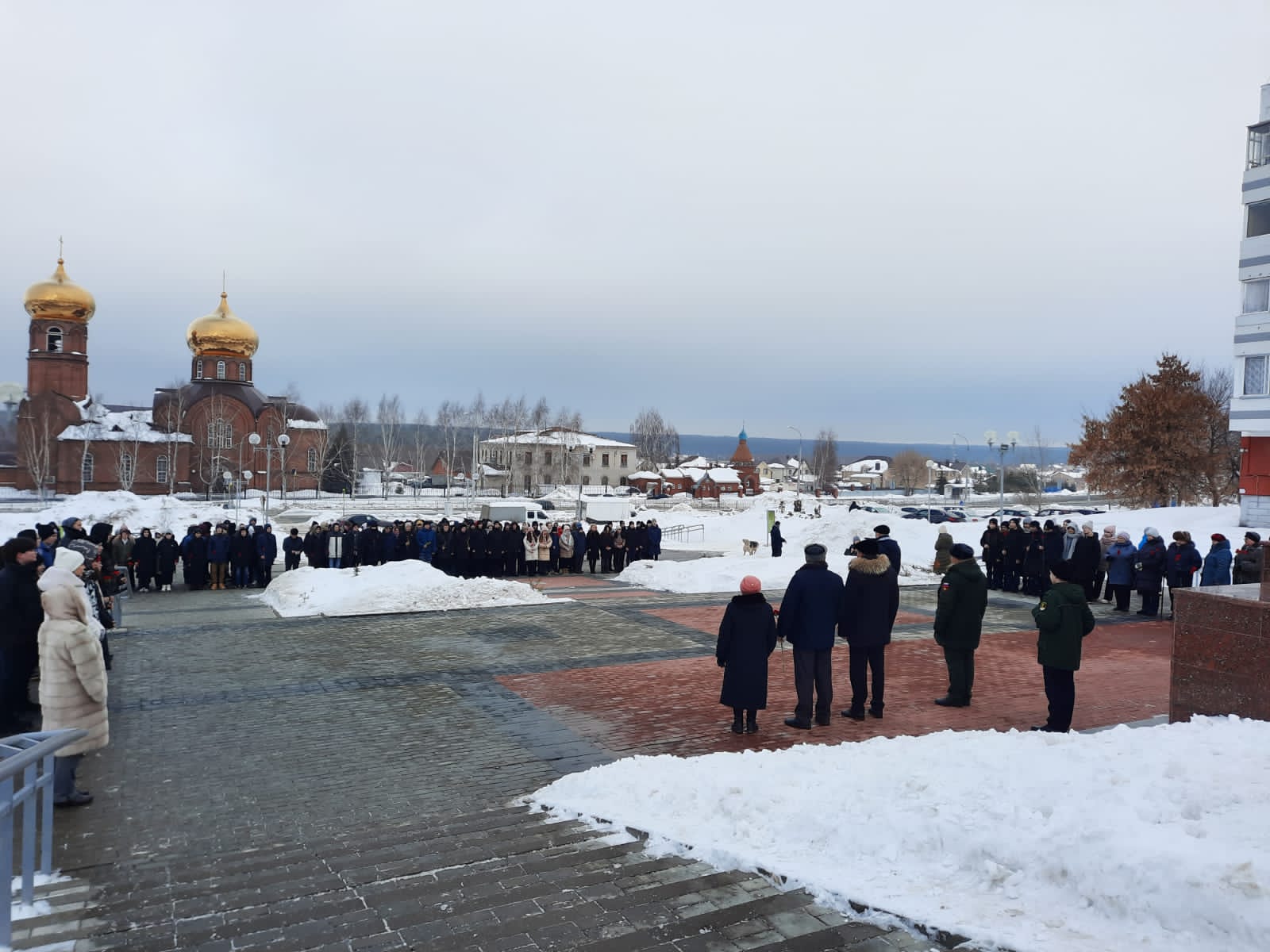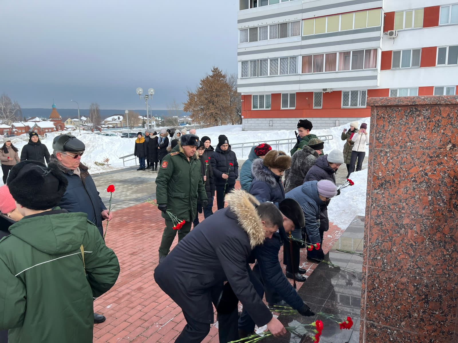 В церемонии возложения цветов приняли участие ветераны и руководители города, Военный комиссариат, офицеры, учащиеся и студенты учреждений района, жители города.