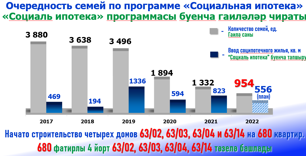 Мэр города Наиль Магдеев сообщил в ходе сессии Городского Совета, что план по вводу жилья полностью выполнен. В 2021 построено 36 многоэтажных жилых домов. По программе «Социальная ипотека» построено два жилых дома, что позволило значительно сократить очередность.