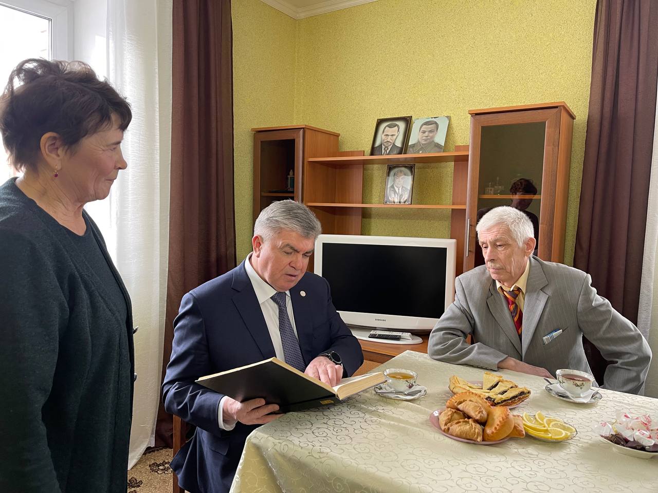 Беседа продолжилась за чайным столом. Мэр изучил книгу "Память" и пообщался с челнинской семьей.