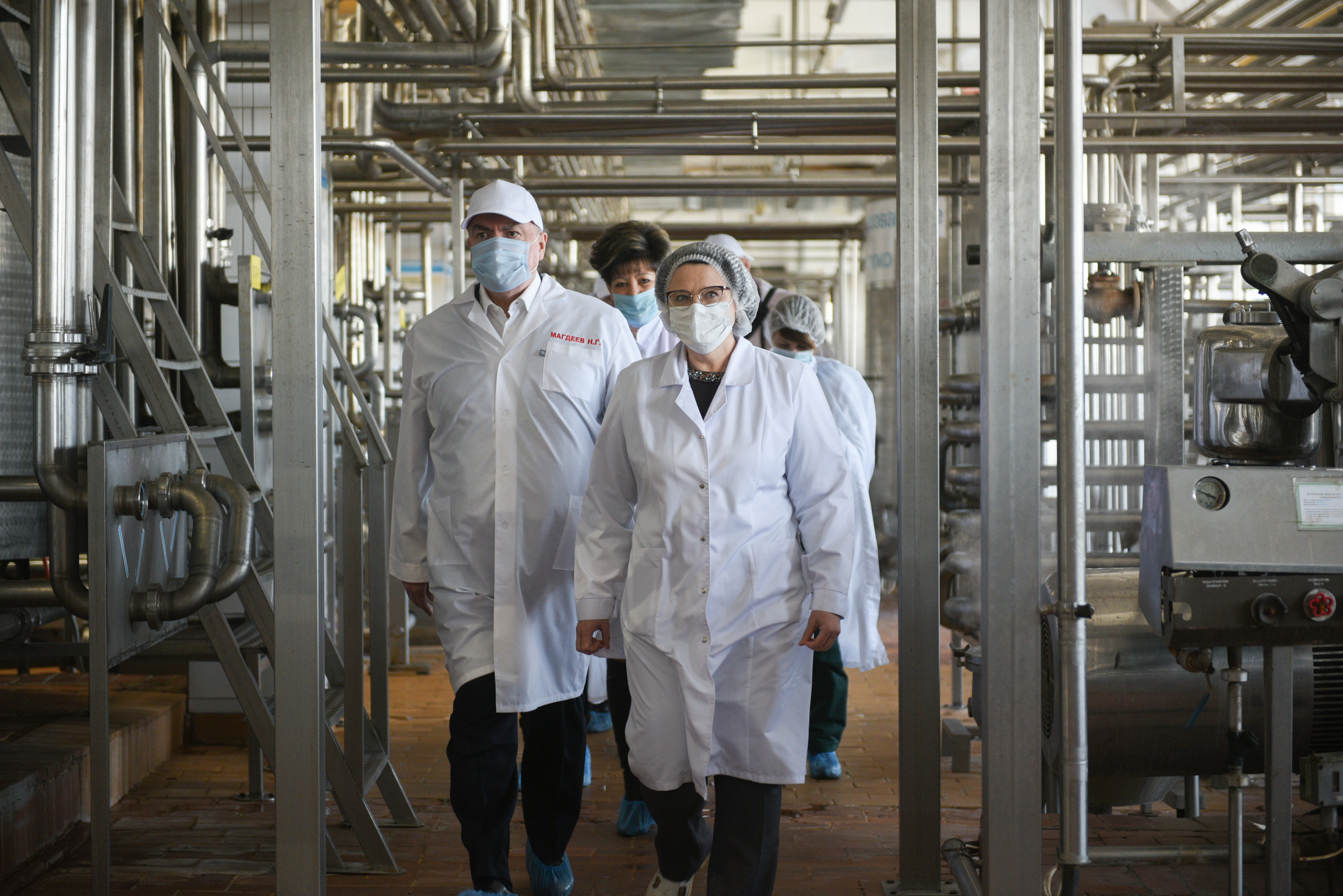 Наиль Магдеев осмотрел цеха производства молока, творога, кисломолочной продукции, сметаны и рассольного сыра.