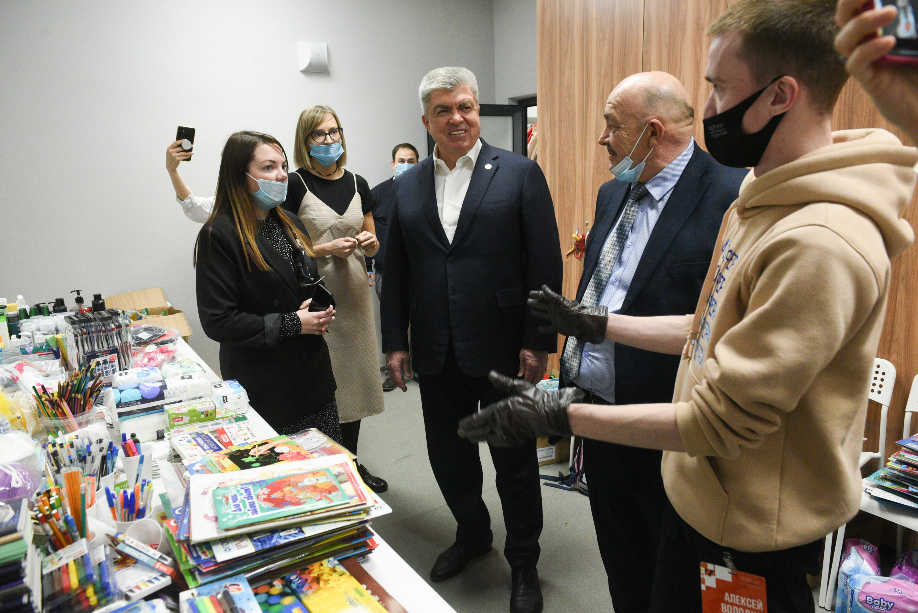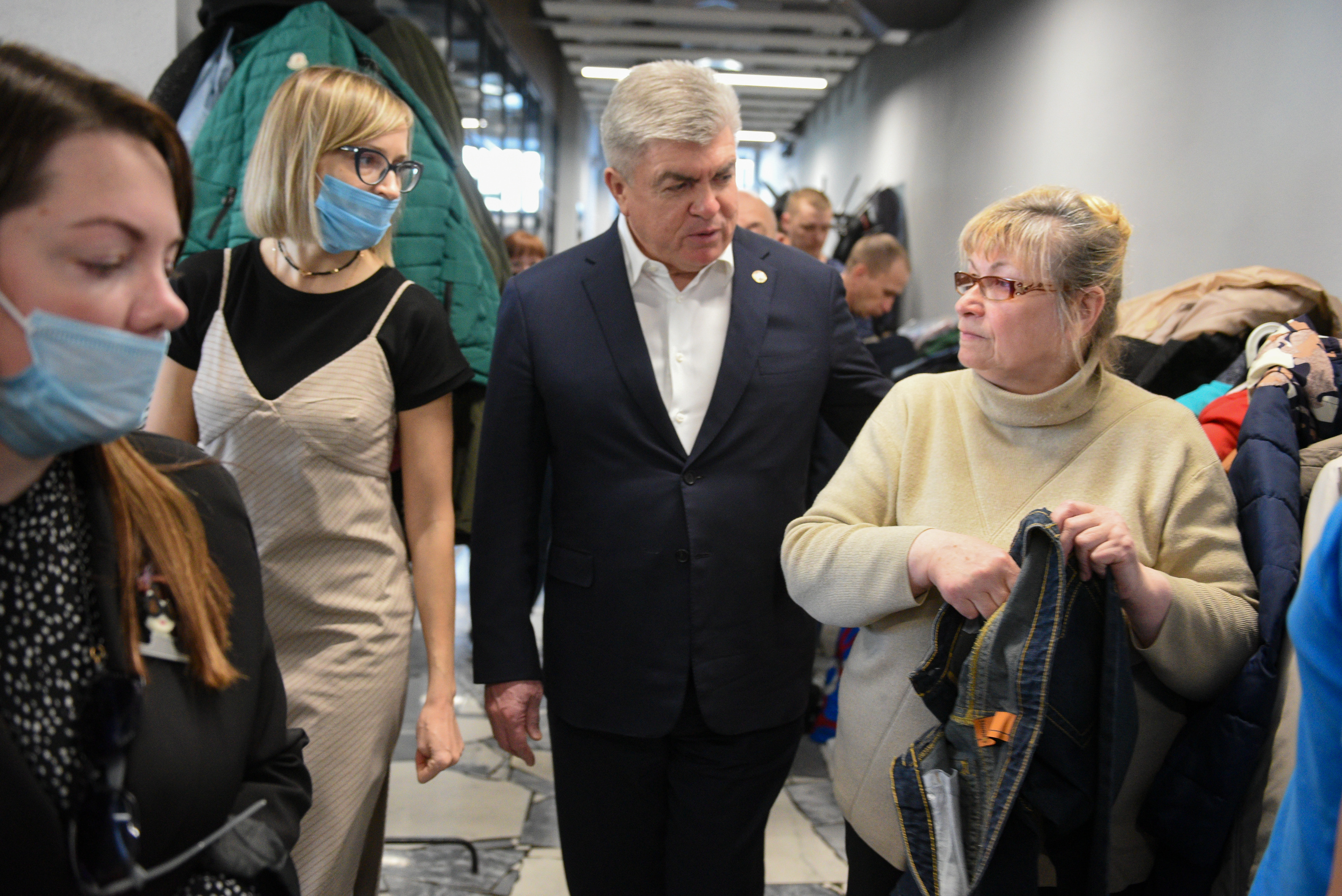 Мэр города Наиль Магдеев посетил сегодня молодёжный центр "Нур", где продолжается приём одежды для вынужденных переселенцев из Мариуполя, и пообщался с мариупольцами.