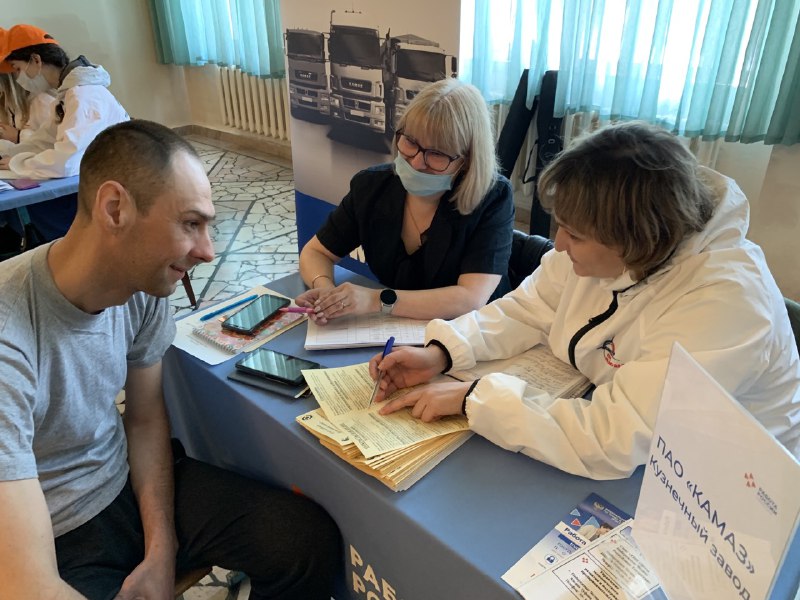 Центр занятости провёл ярмарки вакансий в гостинице «Камазжилбыт» и санатории «Жемчужина» с участием 23-х предприятий.  «Мы пригласили работодателей, предварительно сделав анализ по тем специальностям, которые имеют вынужденные переселенцы, а также отдав приоритет предложениям трудоустройства с проживанием или с компенсацией затрат на жильё», - сообщила директор кадрового центра Татьяна Быданова.