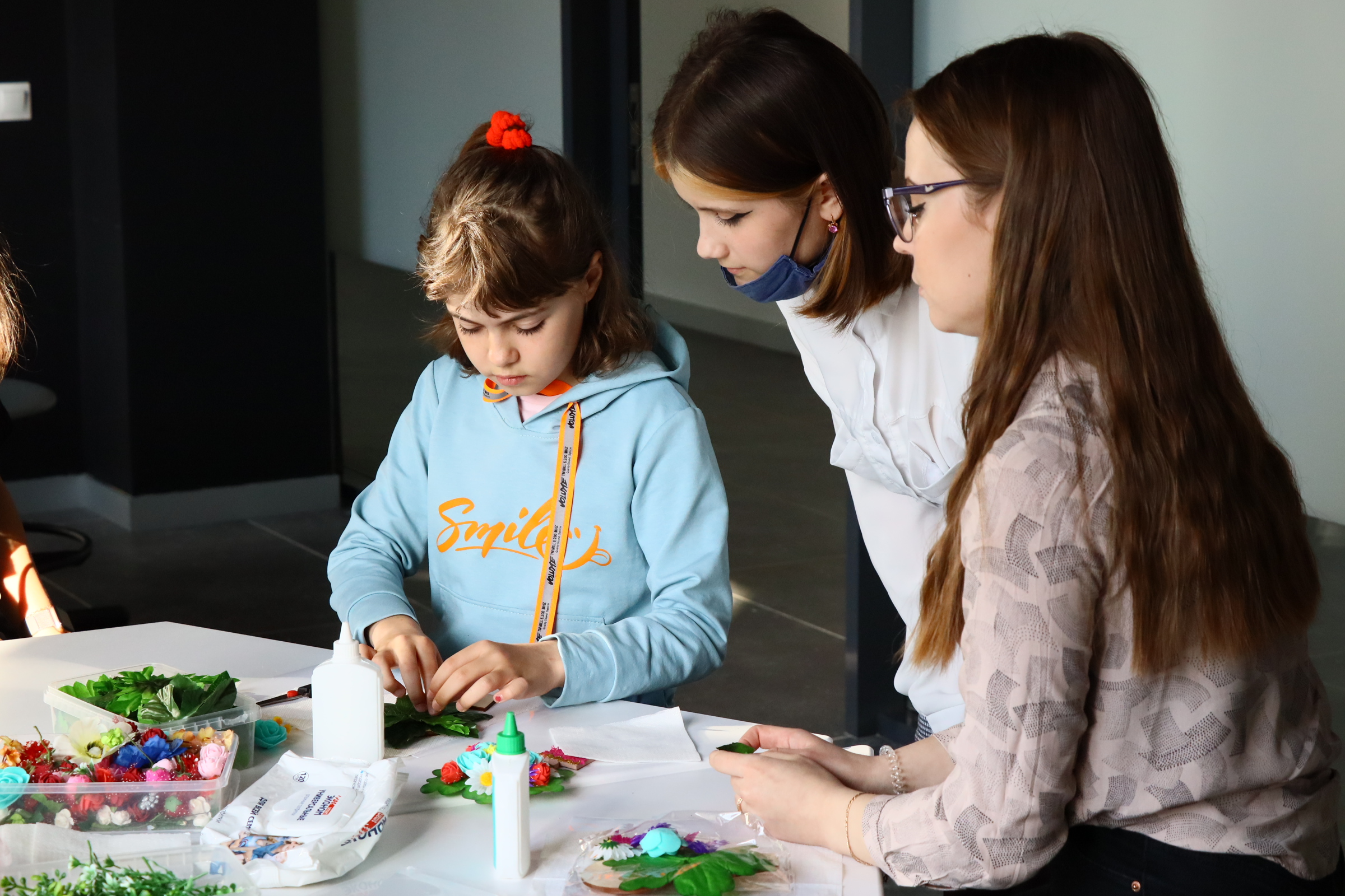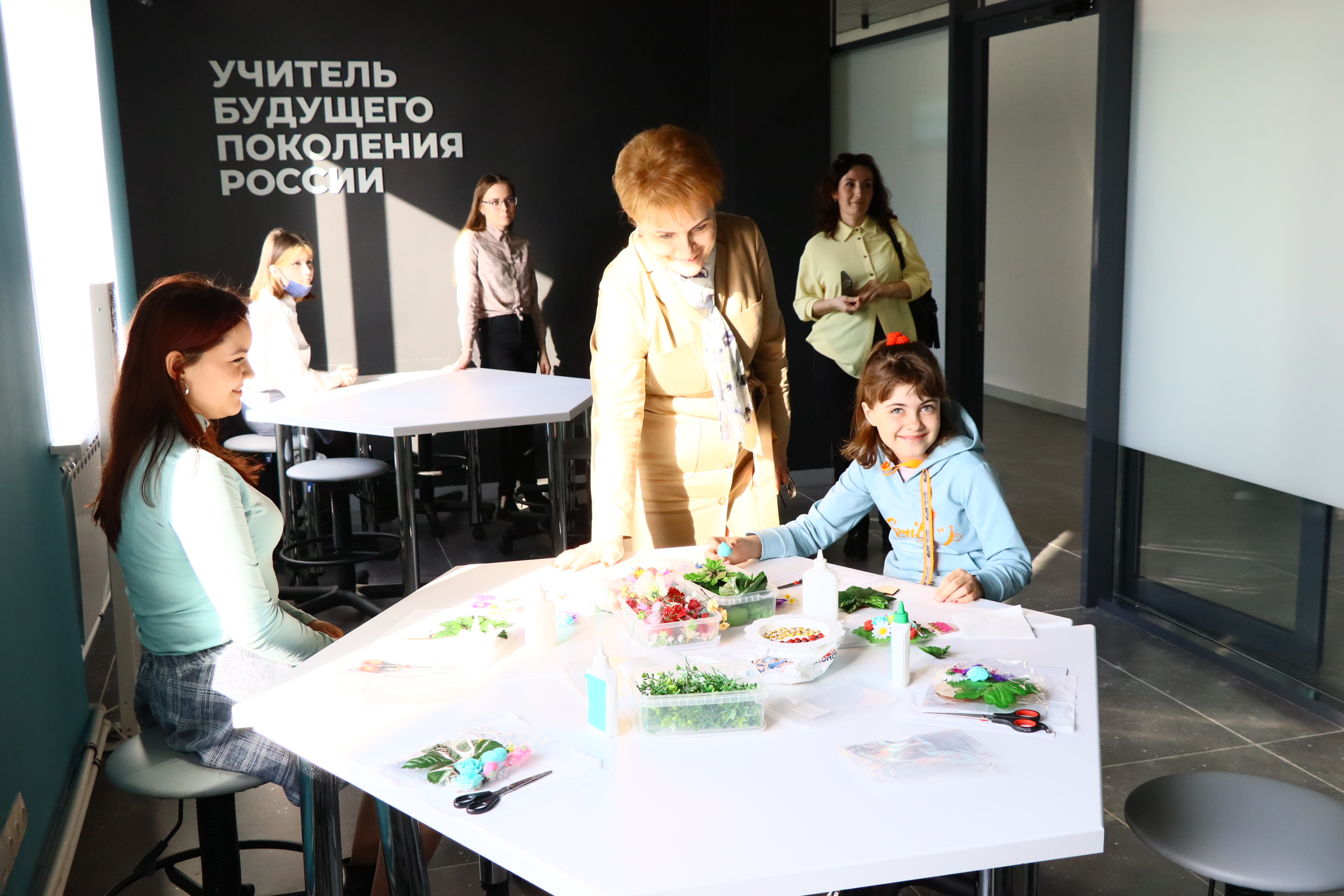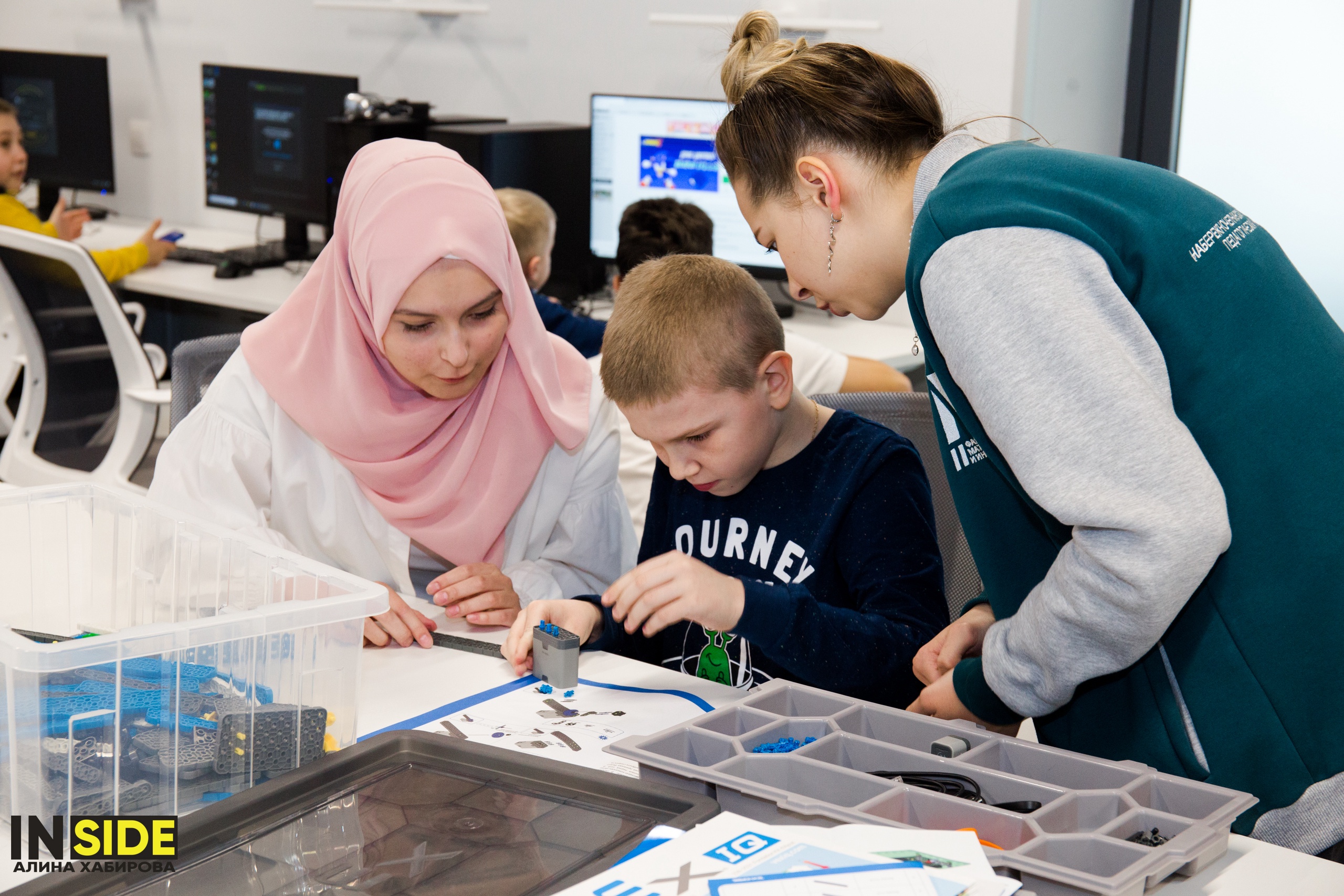 Волонтеры-студенты для девочек провели мастер-класс по декоративно-прикладному искусству. Ребята интересно провели время в проектной мастерской по робототехнике. С помощью виар-очков погружались в виртуальную реальность, собирали лего-роботов. После занятий для детей был организован вкусный обед в столовой.
